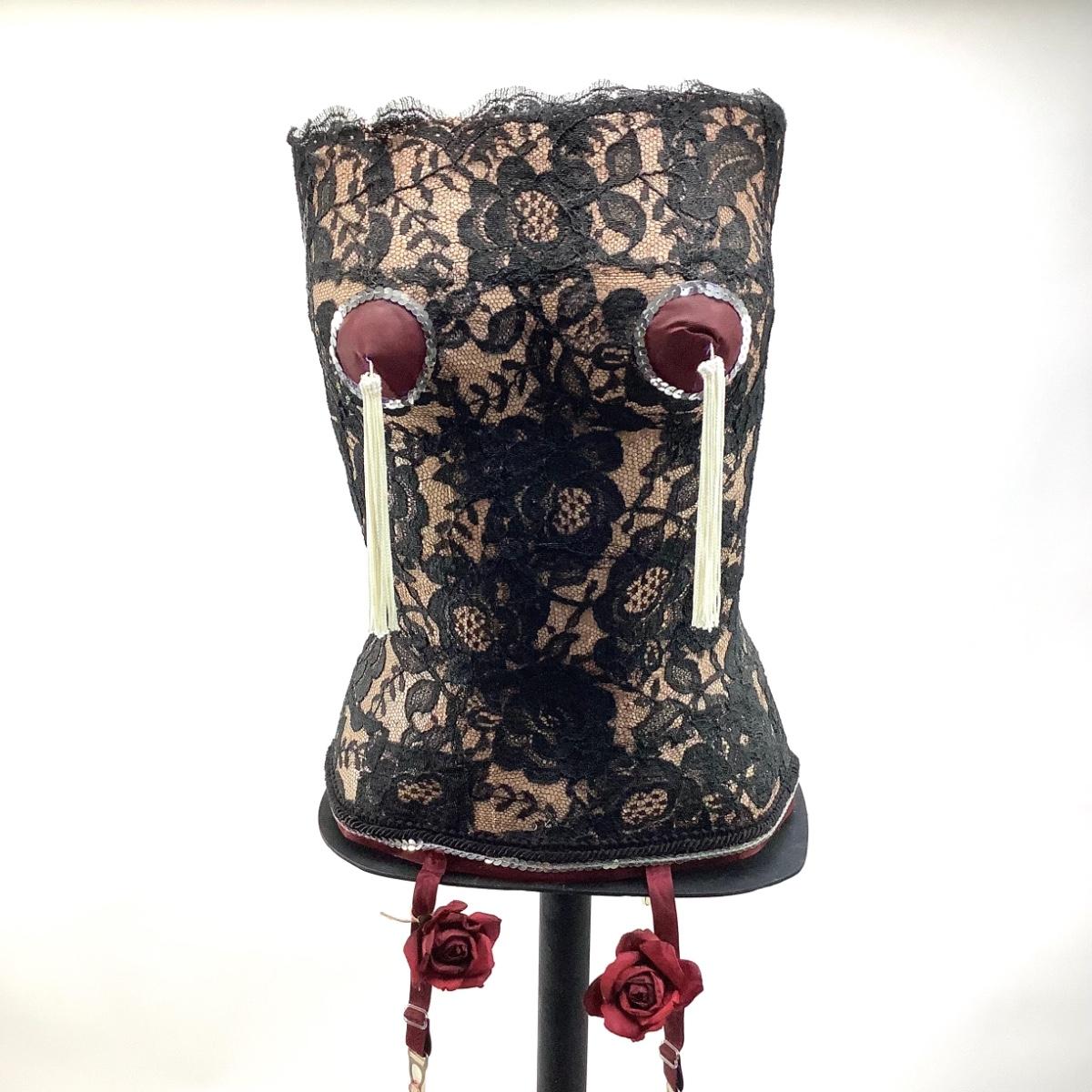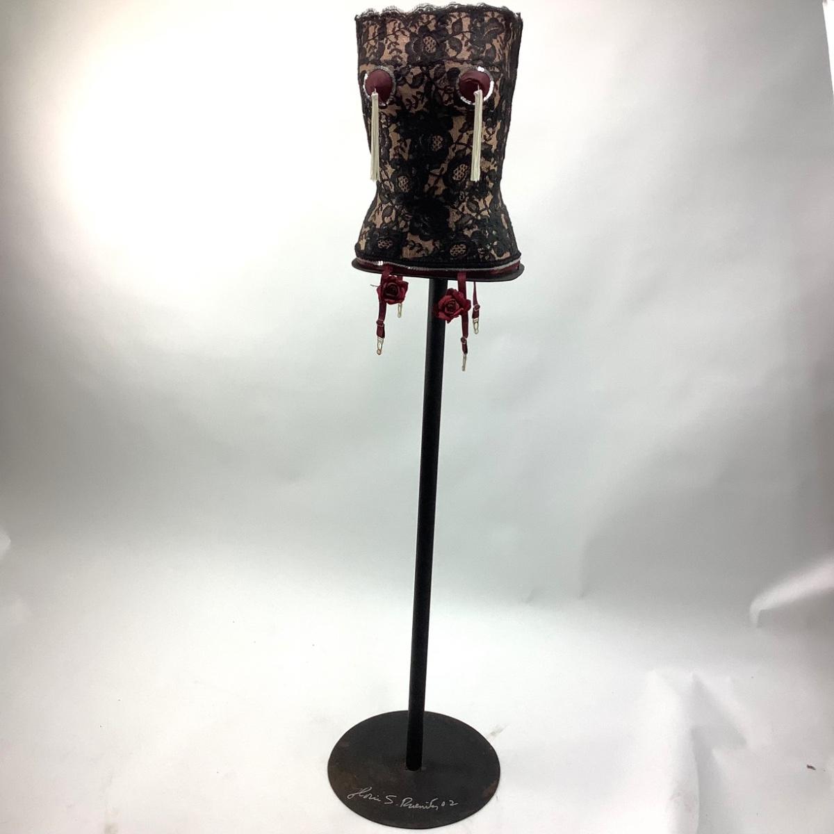 The bustier is 54" tall x 12" wide x 9" deep. It is signed by the artist and dated 2002.