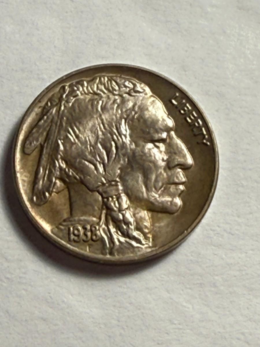 1938-D Uncirculated Condition Lightly Toned Buffalo Nickel as Pictured.
