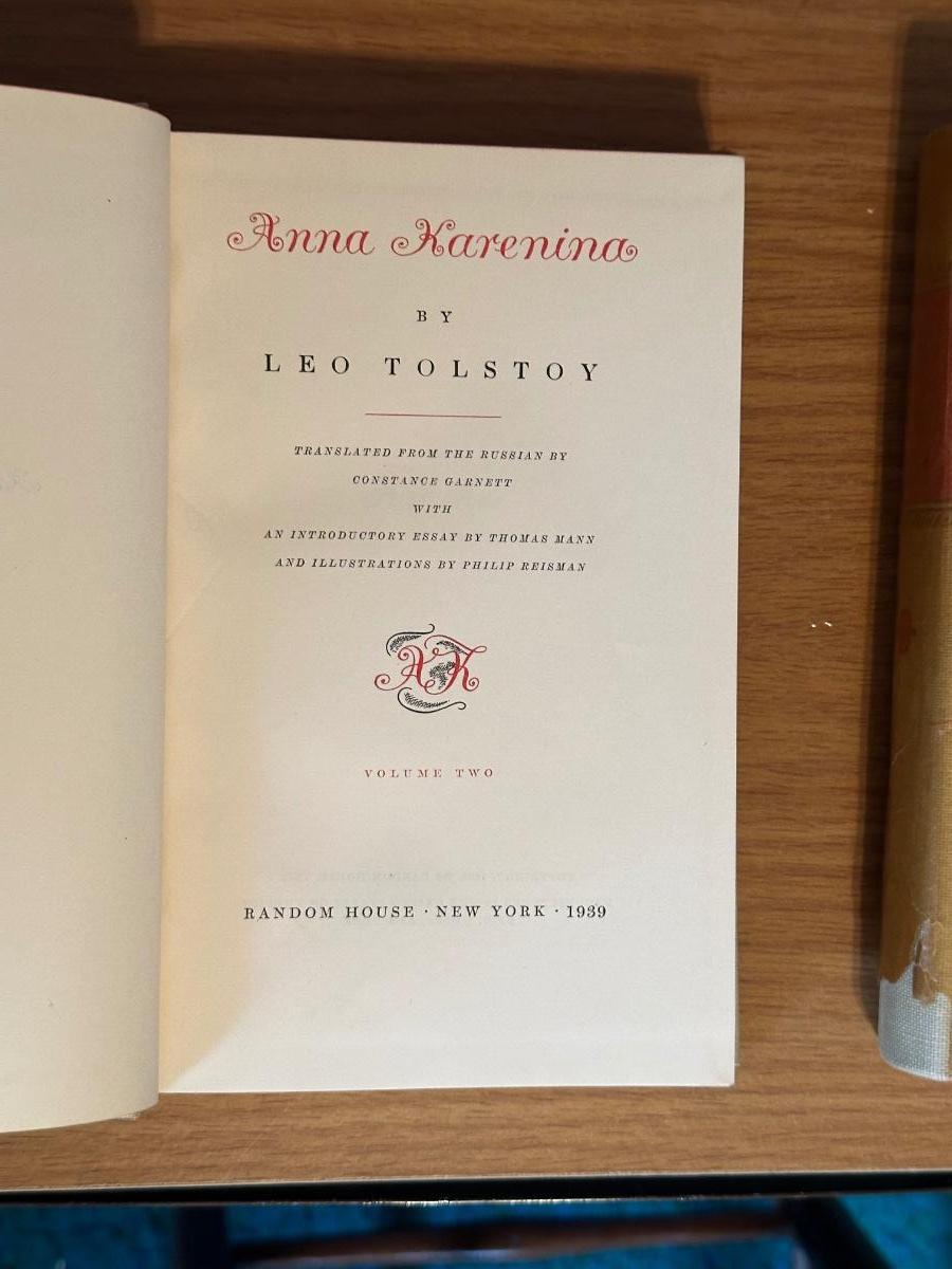 1939 "ANNA KARENINA" 2 VOLUME HARDBACKS IN A SLEEVE BY LEO TOLSTOY