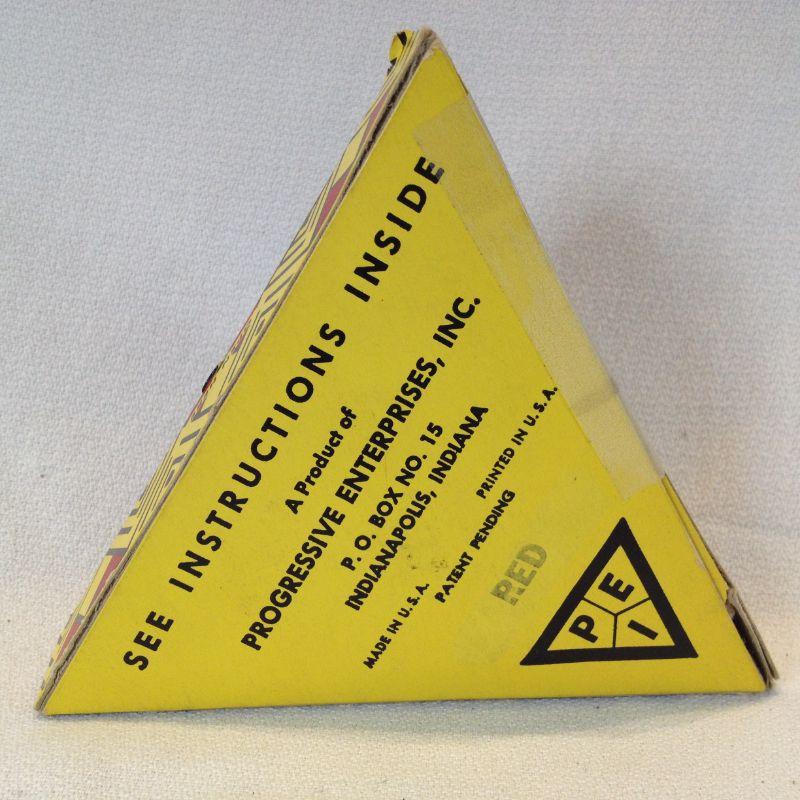 It's a game and it's a test. This very cool game looks to have never been used. It was made in 1939 by Progressive Enterprises, Inc. of Indianapolis, Indiana USA. Looks like fun! Great graphics on the triangle box.