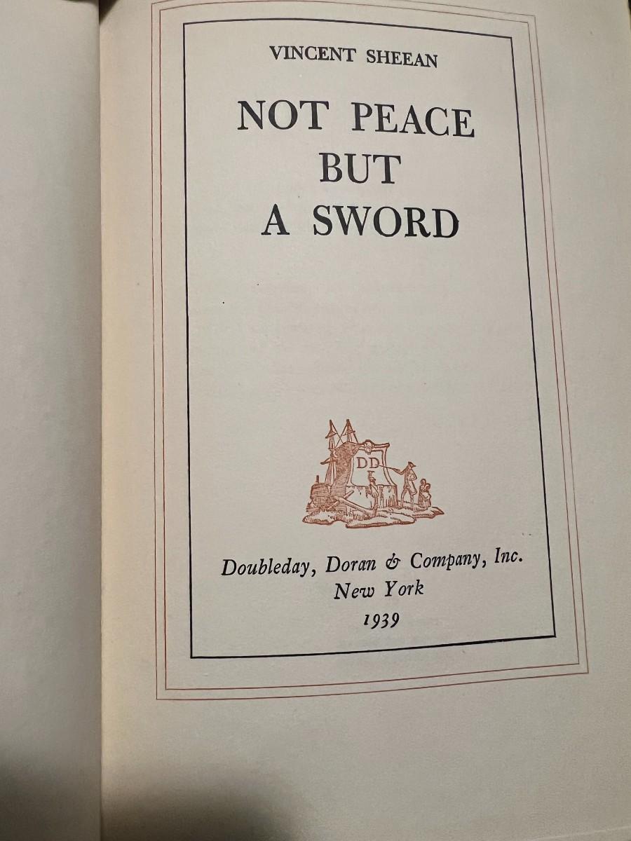 1939 Not Peace But a Sword — Vincent Sheean (Doubleday, Doran & Co.)