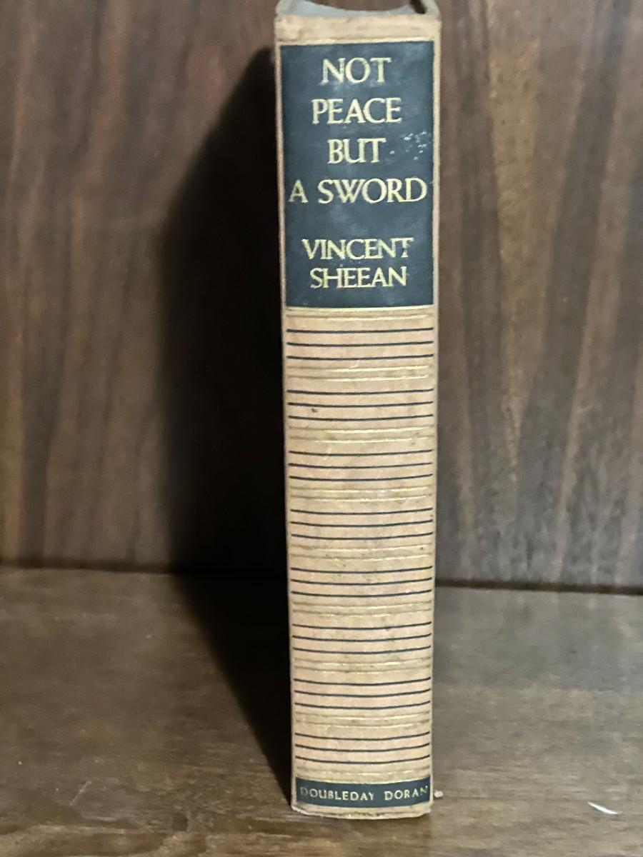 Original 1939 hardcover edition of Not Peace But a Sword by Vincent Sheean, published by Doubleday, Doran & Company, Inc. Sheean, an influential journalist and foreign correspondent, wrote this book as Europe approached World War II. It offers firsthand commentary on global politics, rising fascism, and the international tensions leading to conflict.