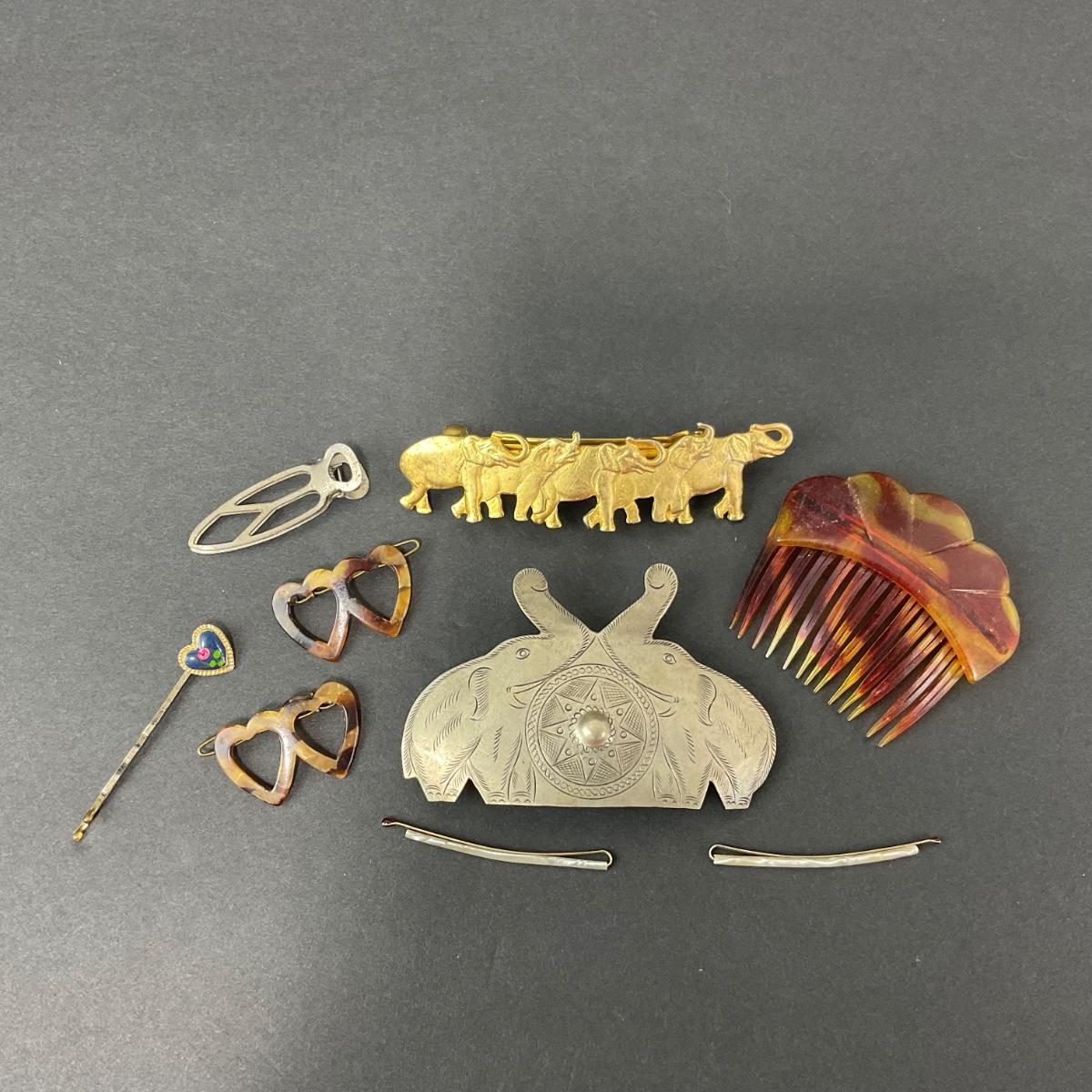 -194- ACCESSORIES | Assortment Of Hair Barrettes, Bobby Pins, & Comb