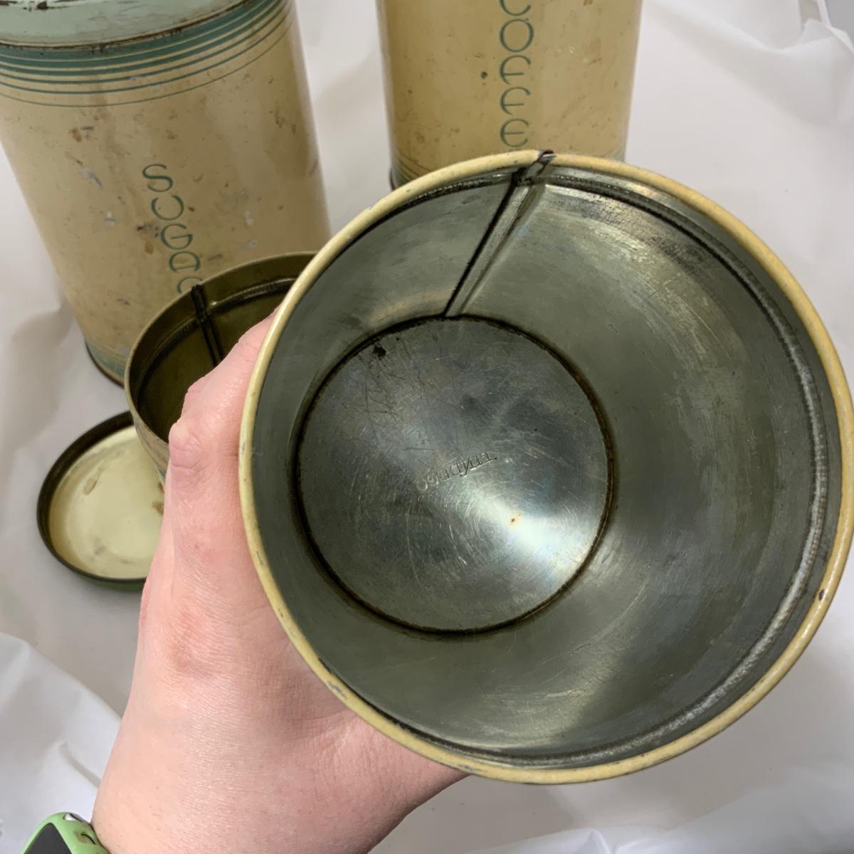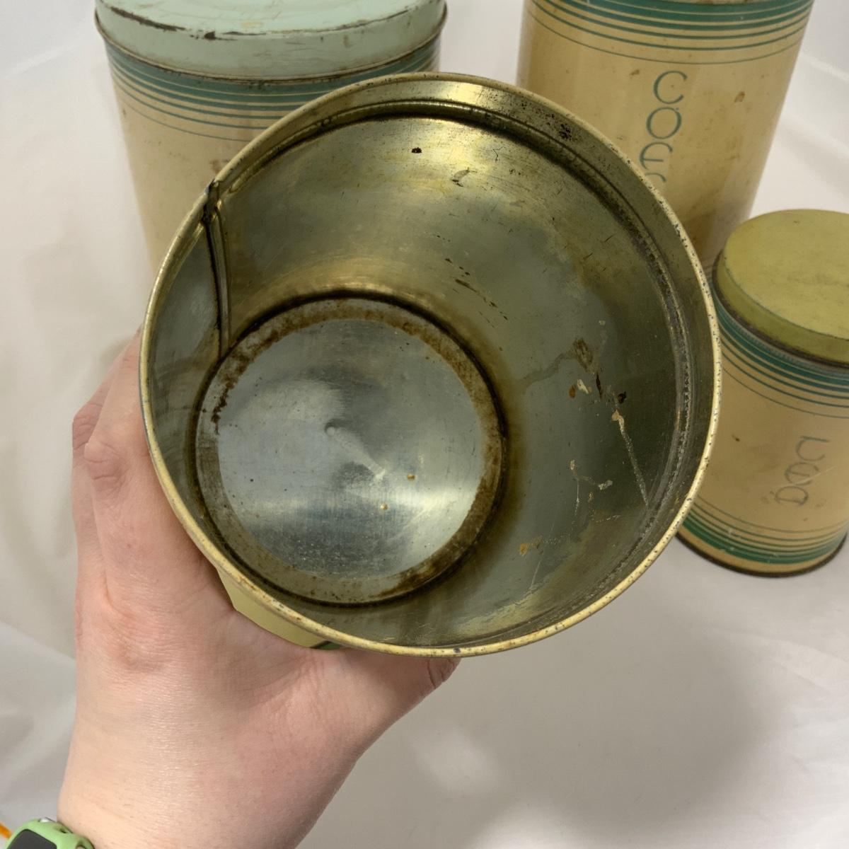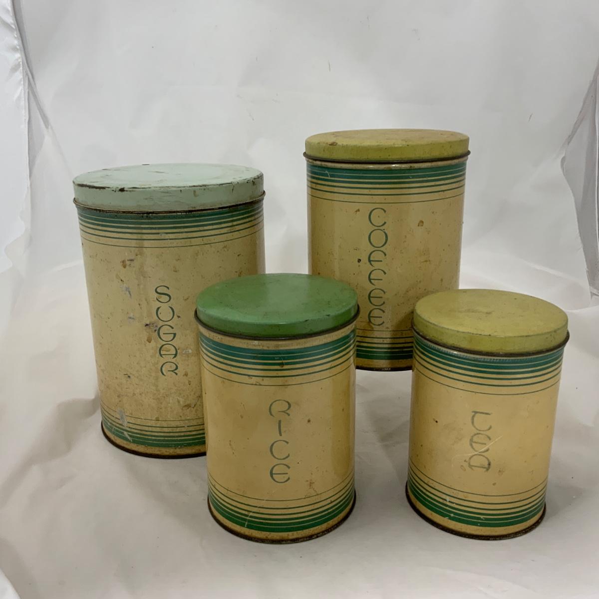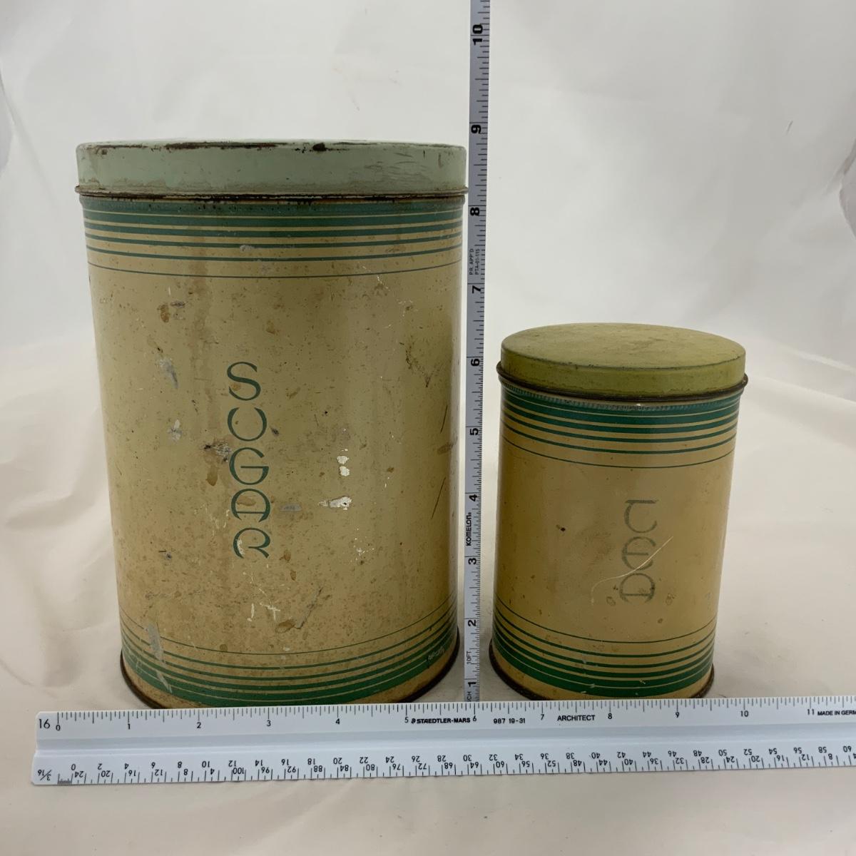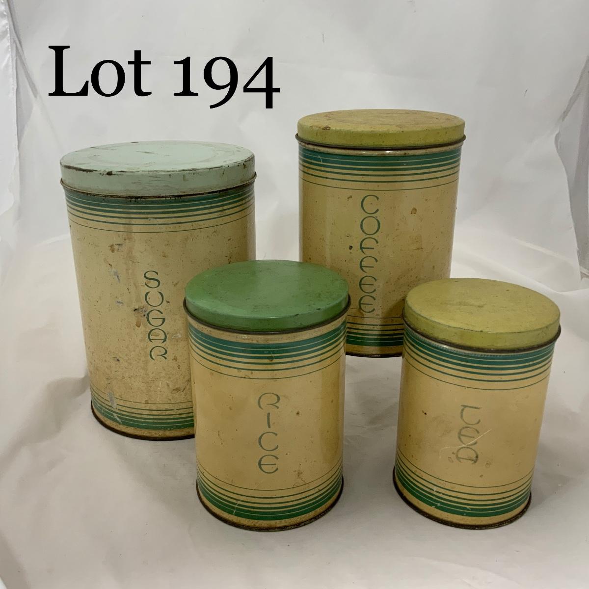 Who doesn’t love a good canister set? This one is from the 1930s and is in pretty great condition. If you are planning on using these in your home I would clean them up a bit and perhaps figure out a plastic liner situation, as some of them have rust on the interior. Overall these are really excellent pieces and you’d be lucky to have them in your home. Please see photos for details and condition. Pieces nest together perfectly well. ::: Shipping is available on this lot. If you require shipping you must let us know at the close of the auction. We will coordinate with you after the item has been won. Shipping fees will include insurance up to or exceeding the value of all items being mailed. If you have any questions regarding this lot please contact the auctioneer either via this website, by direct email or by phone. PICK UP TIMES and other important information can be found in the TERMS and DESCRIPTION of the auction. Please take a look for pertinent information. Thanks!