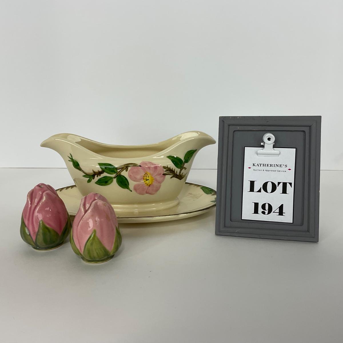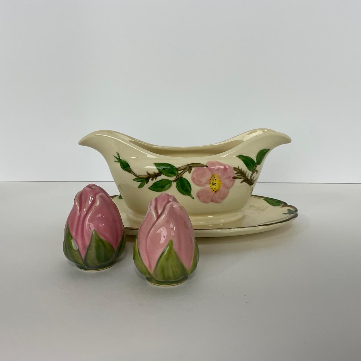 -194- DISHES | Franciscan Desert Rose | Gravy Dish, Salt & Pepper Shakers