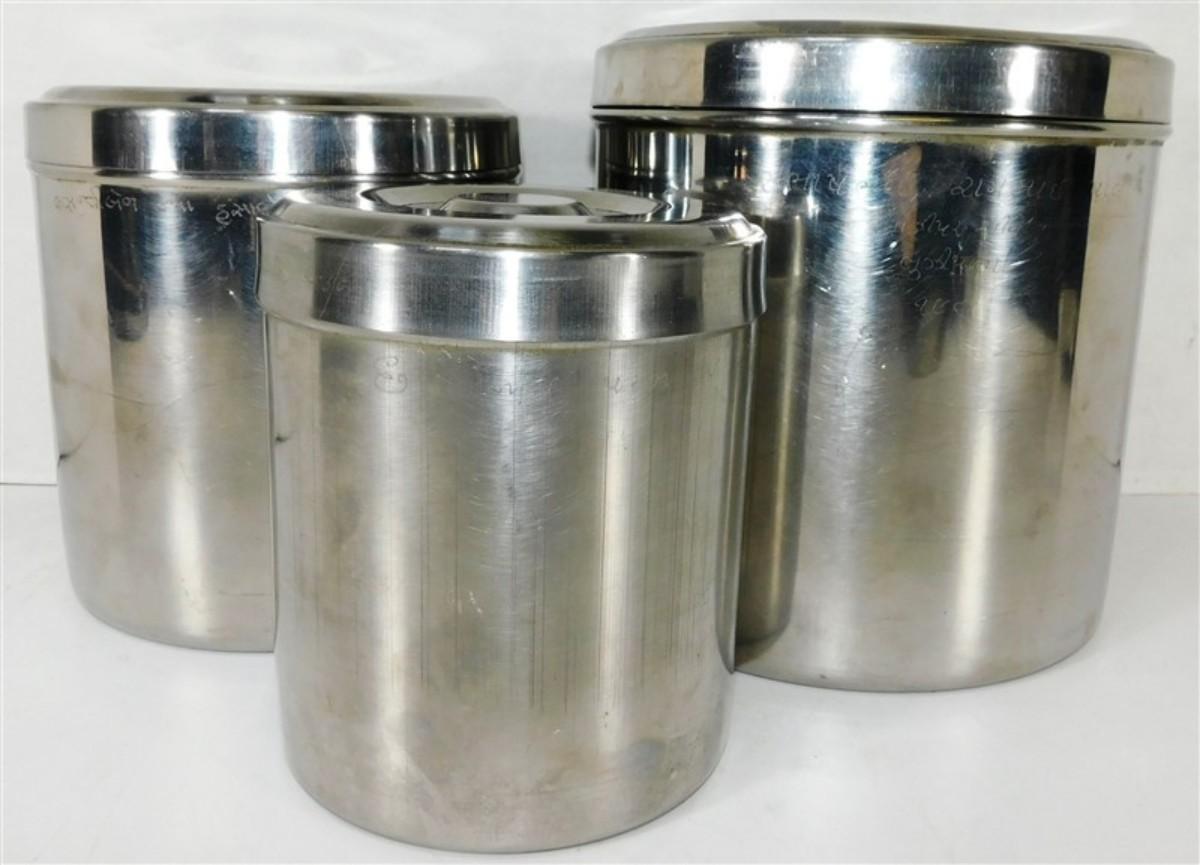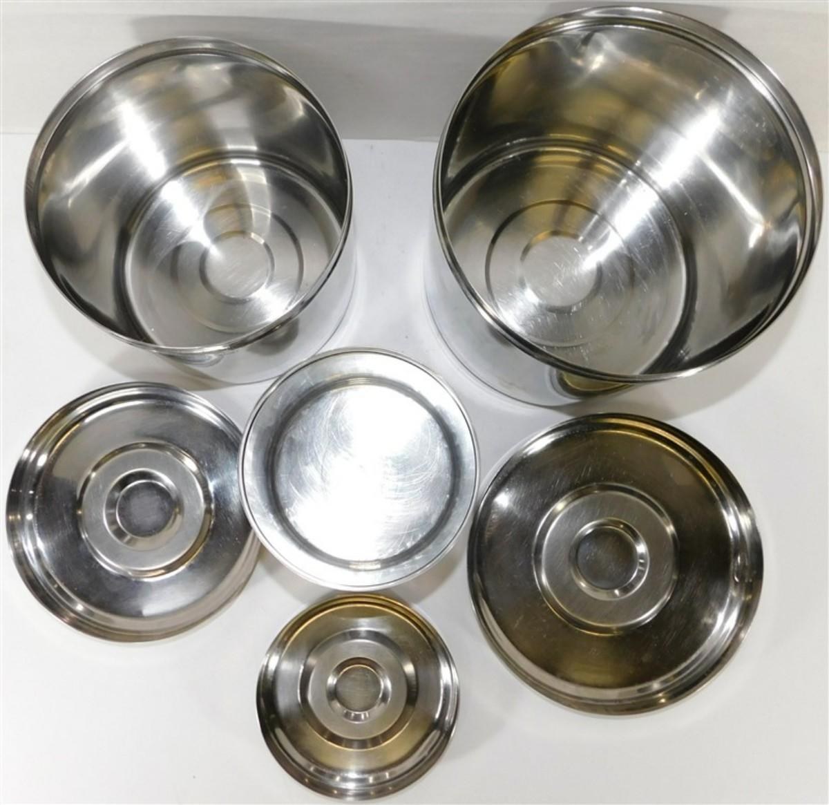 194 Lot of 7 Kitchen Items- Large Stainless Mixing Bowl 12" Vintage Flint Mixer - 4 Stainless Storage Containers