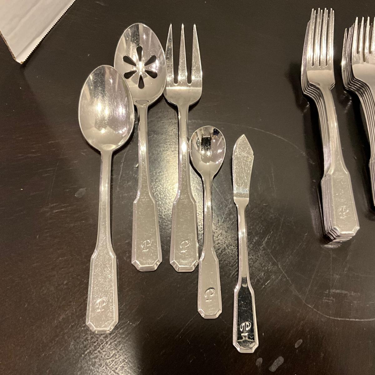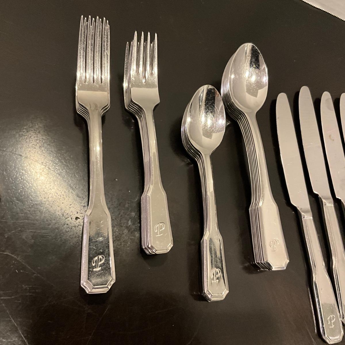194 Set of Cambridge 18/8 Flatware with "P" Initial Engraved