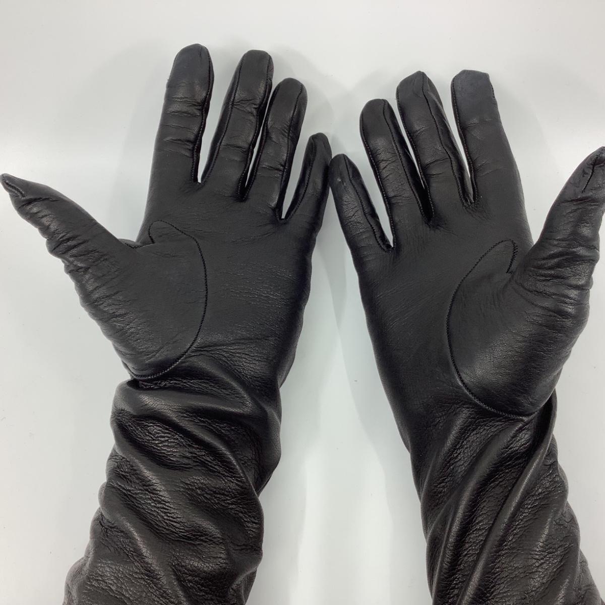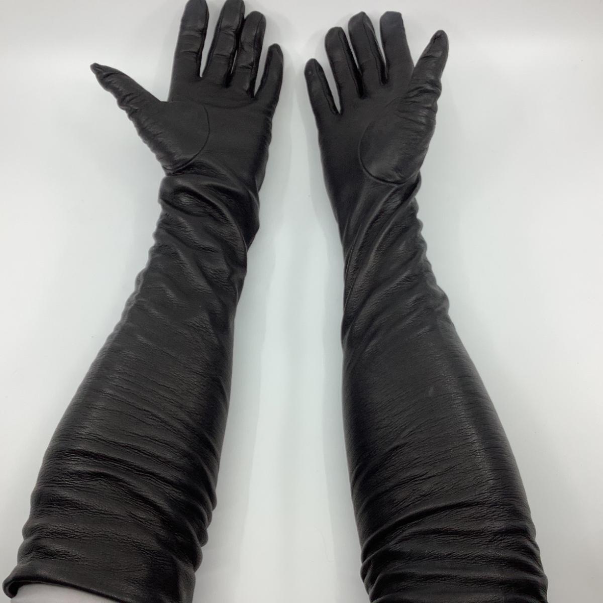 194 VALENTINO Black Long Elbow Length Leather Gloves Size 8
