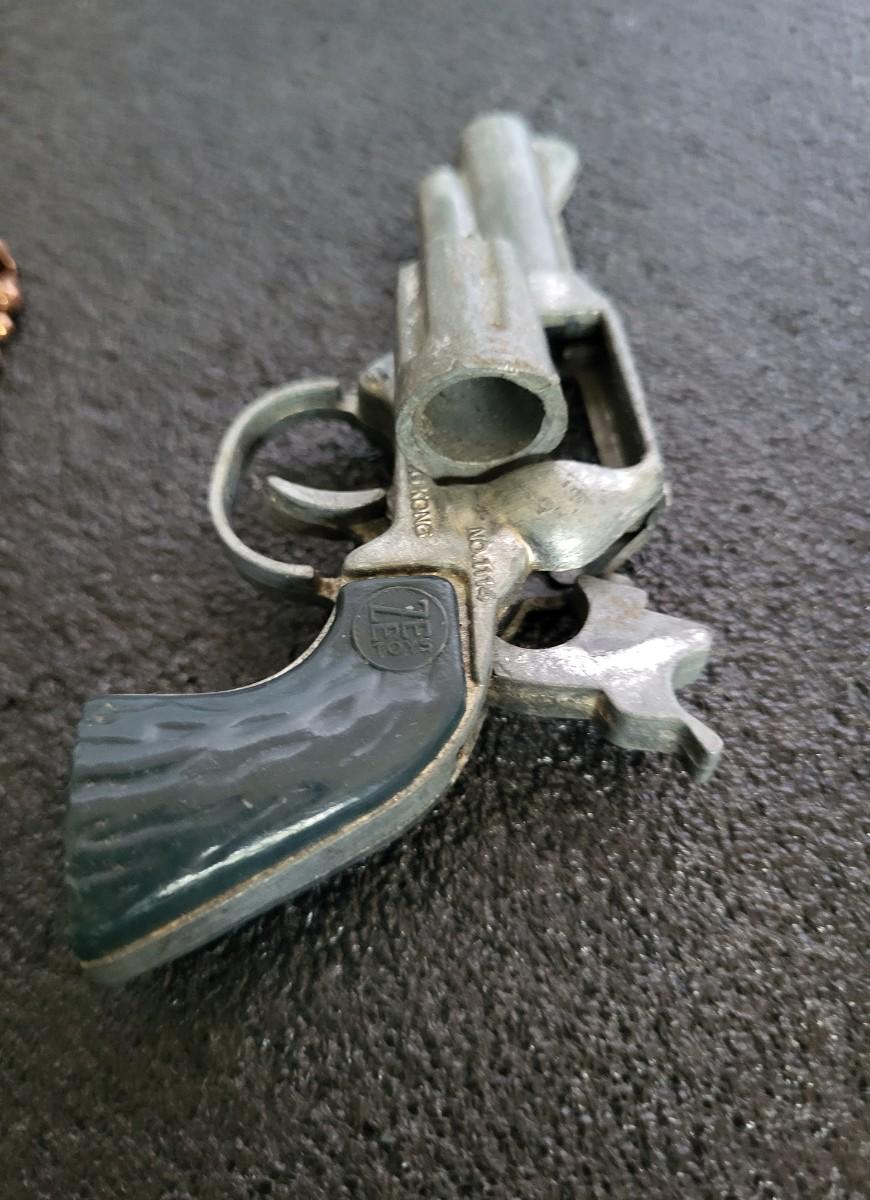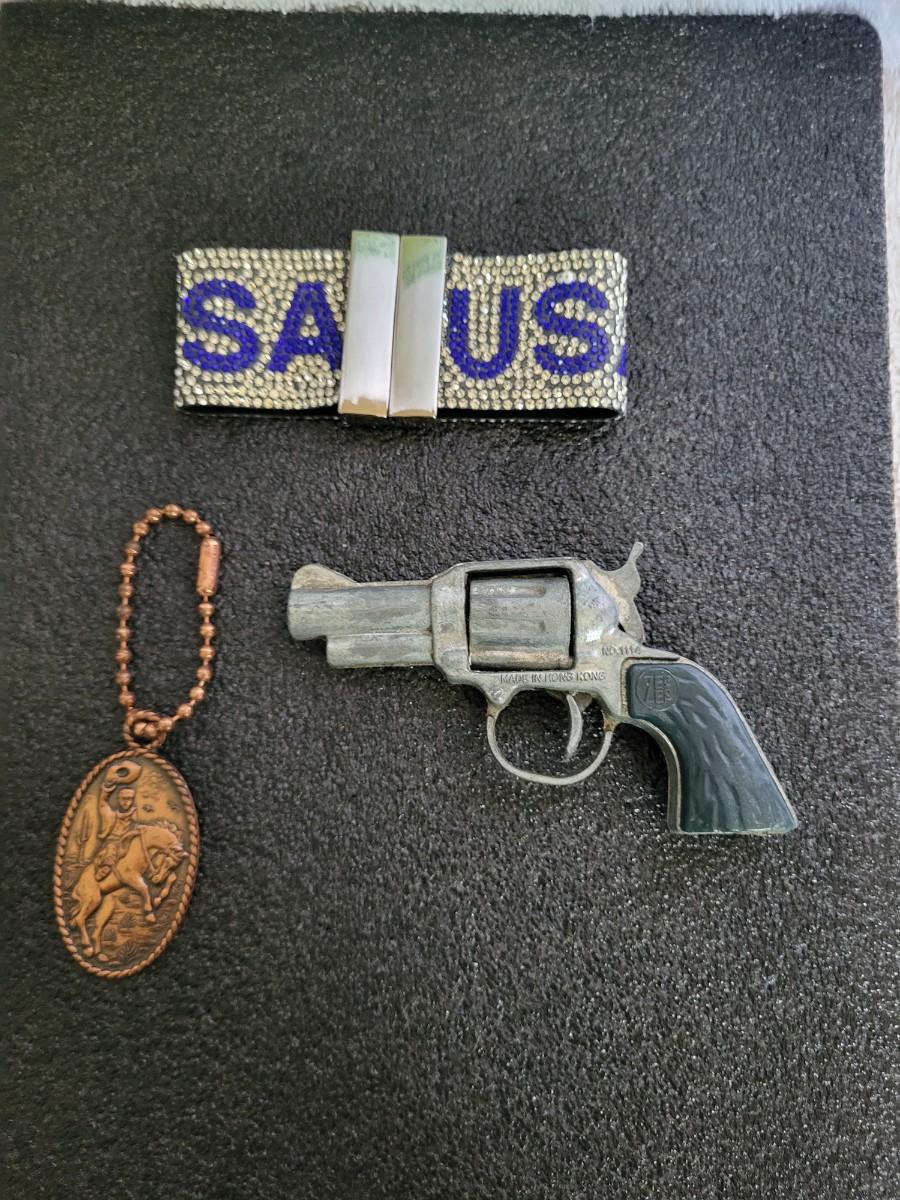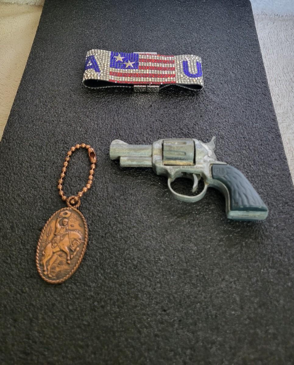 1940 COPPER COWBOY KEYCHAIN, USA BRACELET AND A RANGER TOY PISTOL