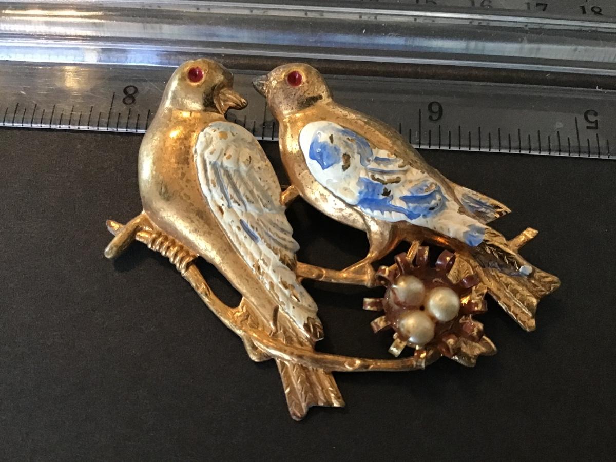 1940 Enamel Love Birds Brooch