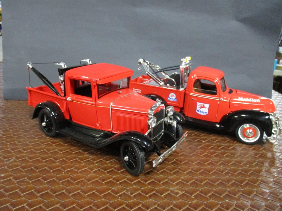 1940 Golden Wheel Mobilgas Tow Truck Bank & 1931 Ford Model A Pickup Scale 1/18
