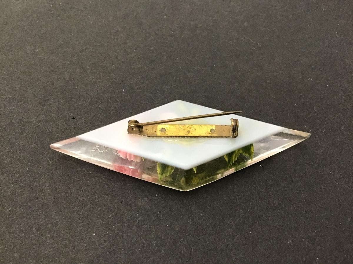 1940 Lucite Pink Rose Vintage Brooch 3 Inch Diamond Shape
