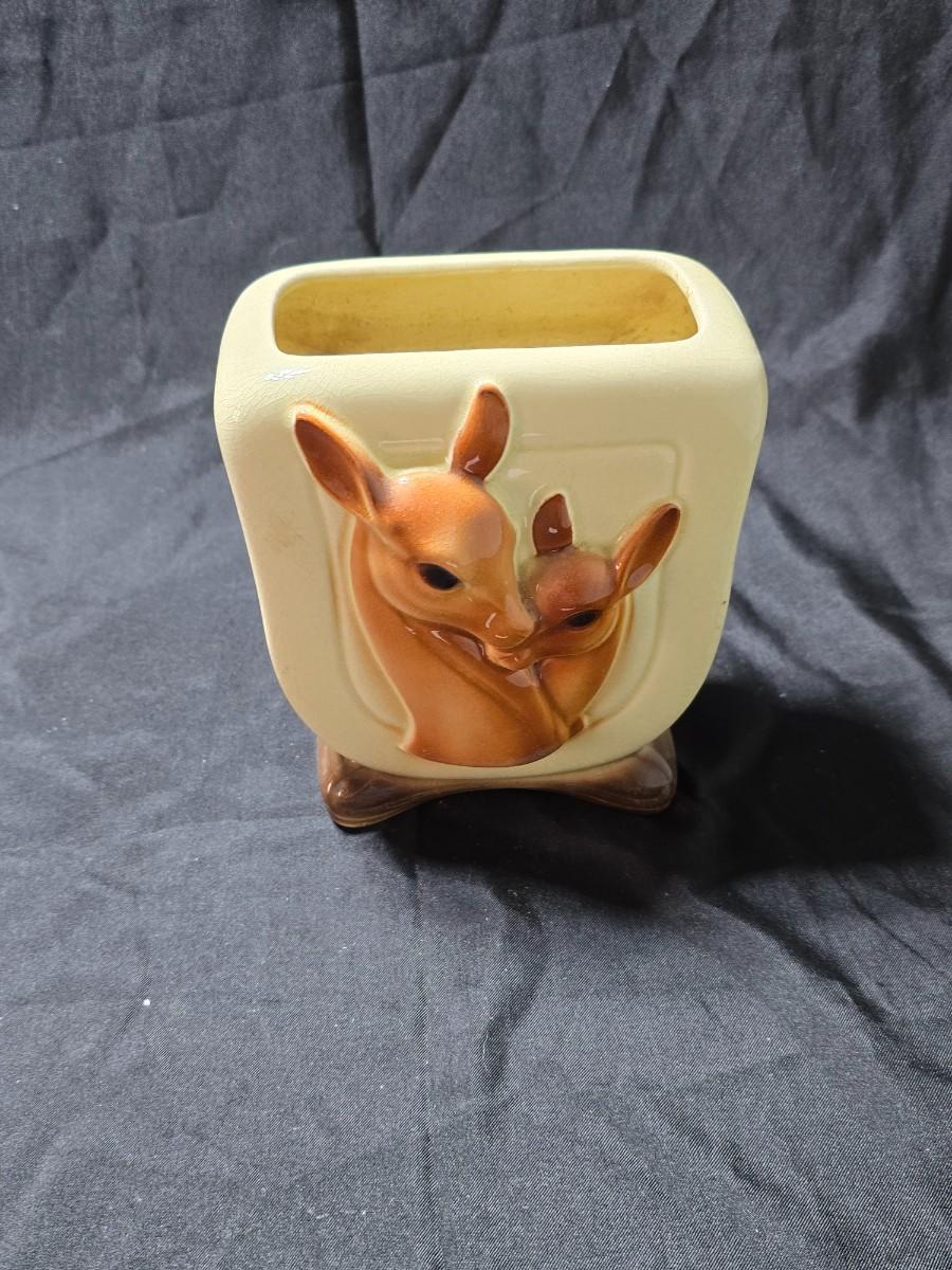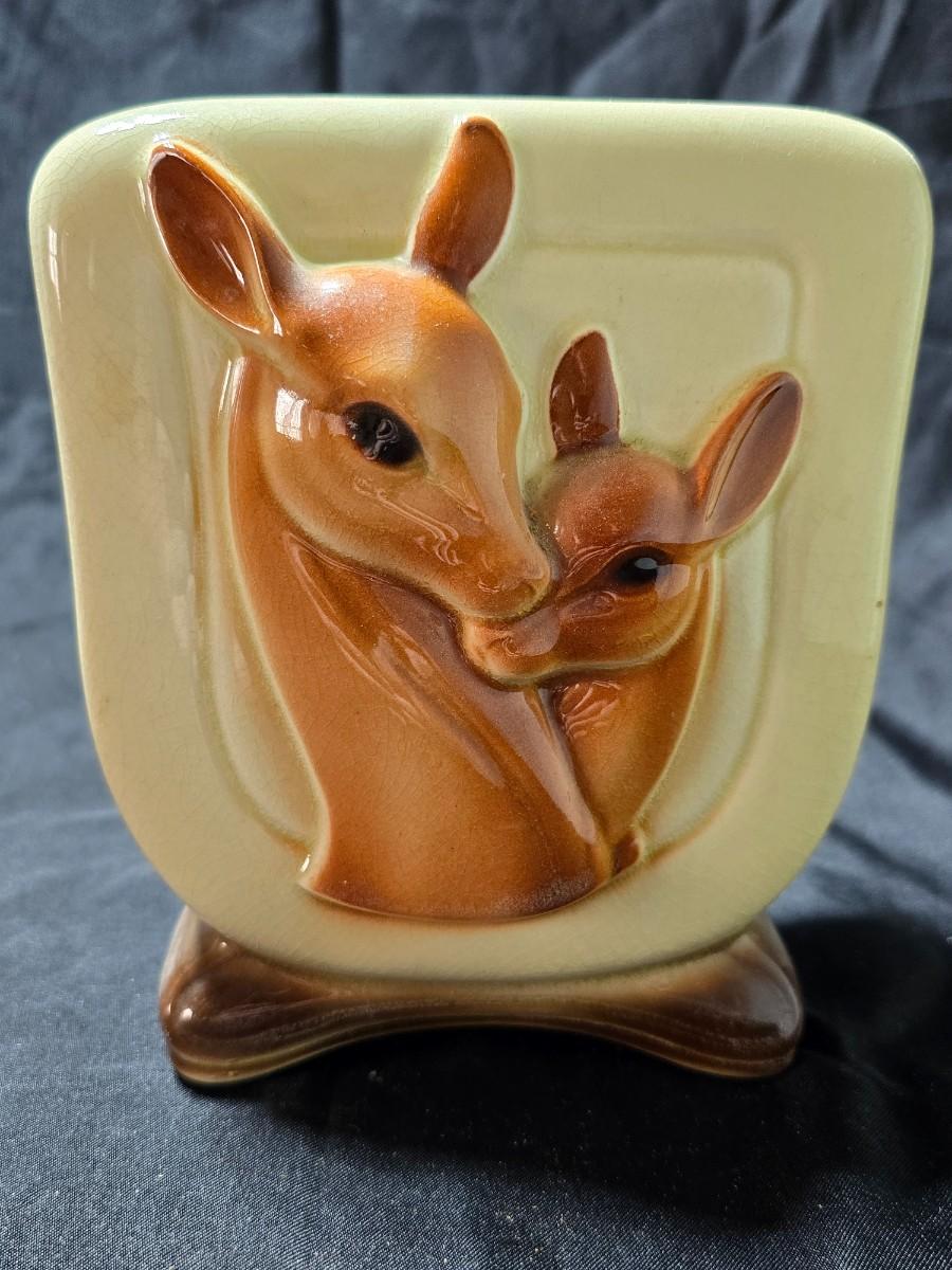 1940-50's MCM Royal Copley ceramic doe and fawn planter or vase