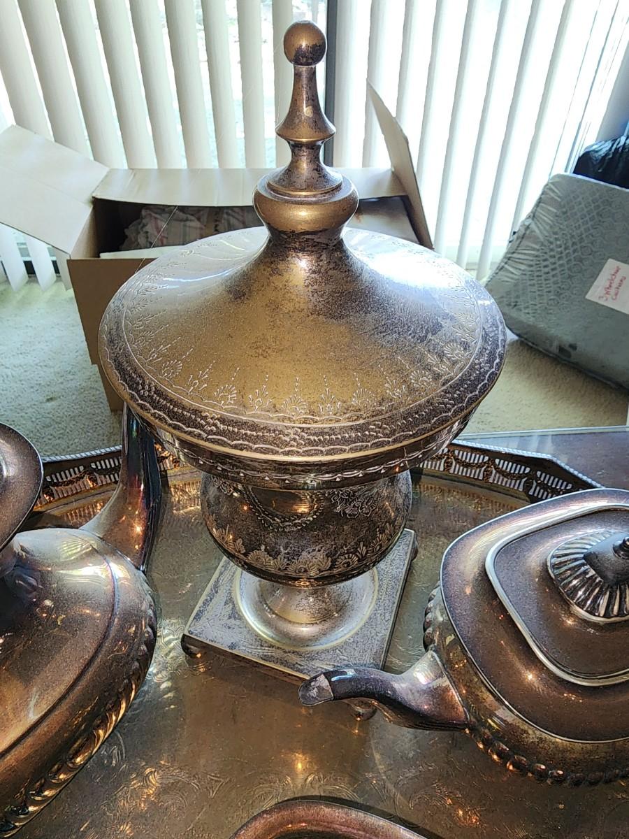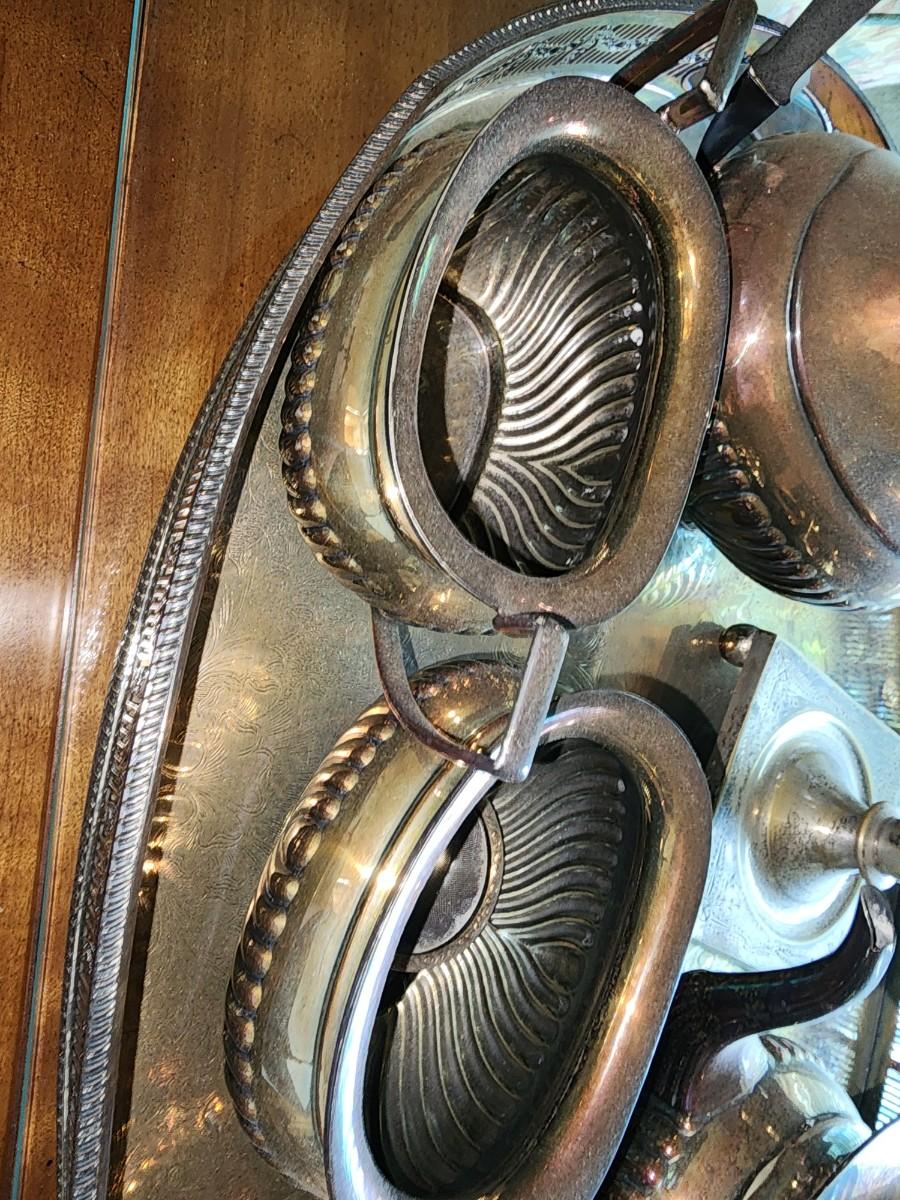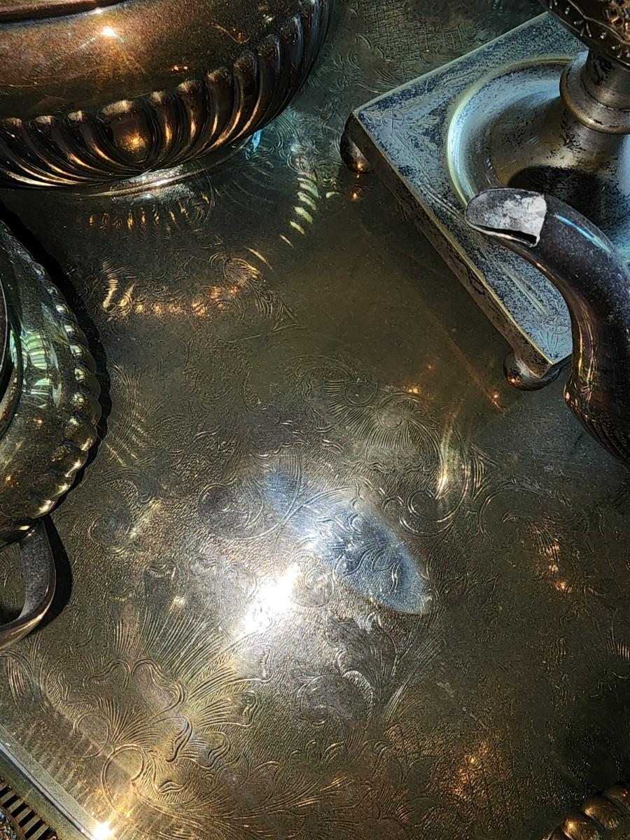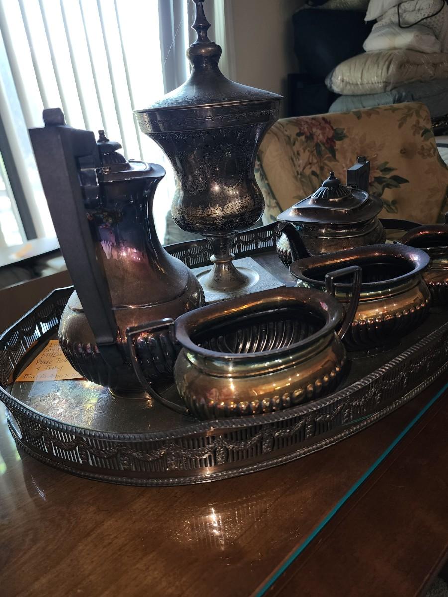 Bottom tray is large 24 by 16 inches. Beautiful set