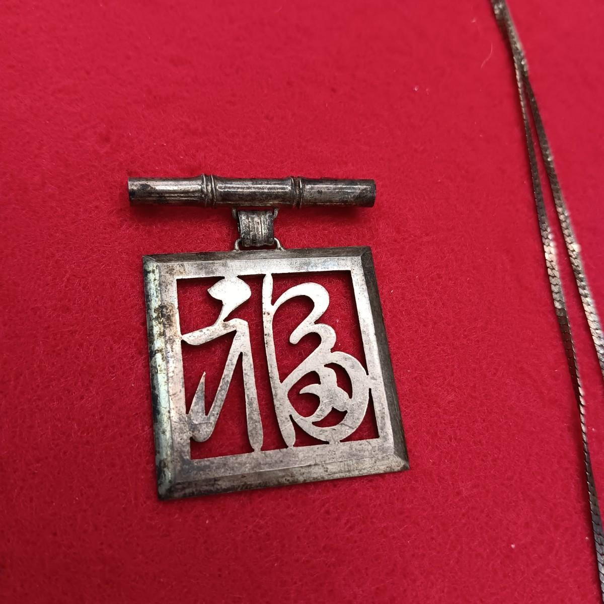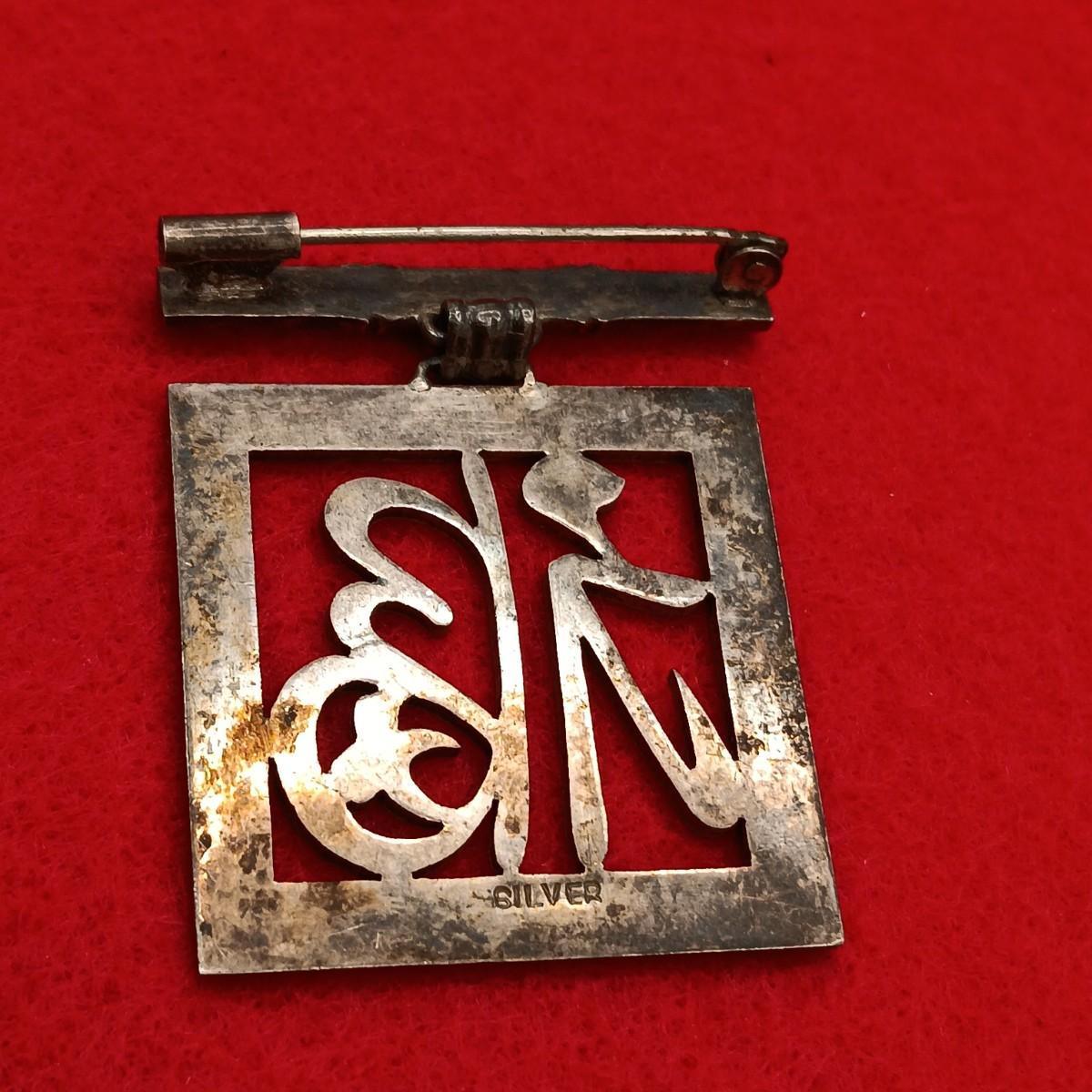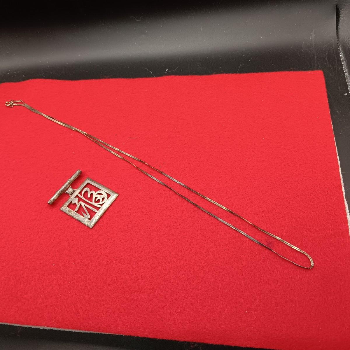 1940'S CHINESE STERLING SILVER PIN WITH TROMBONE CLASP PLUS A STERLING CHAIN 15.49g