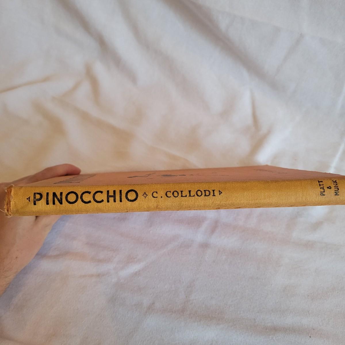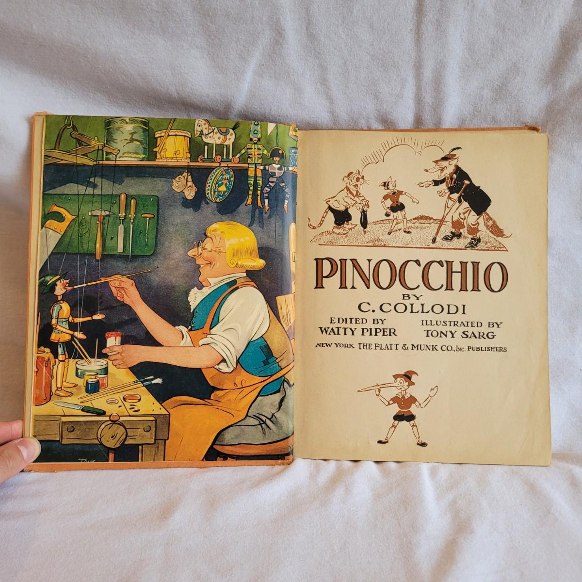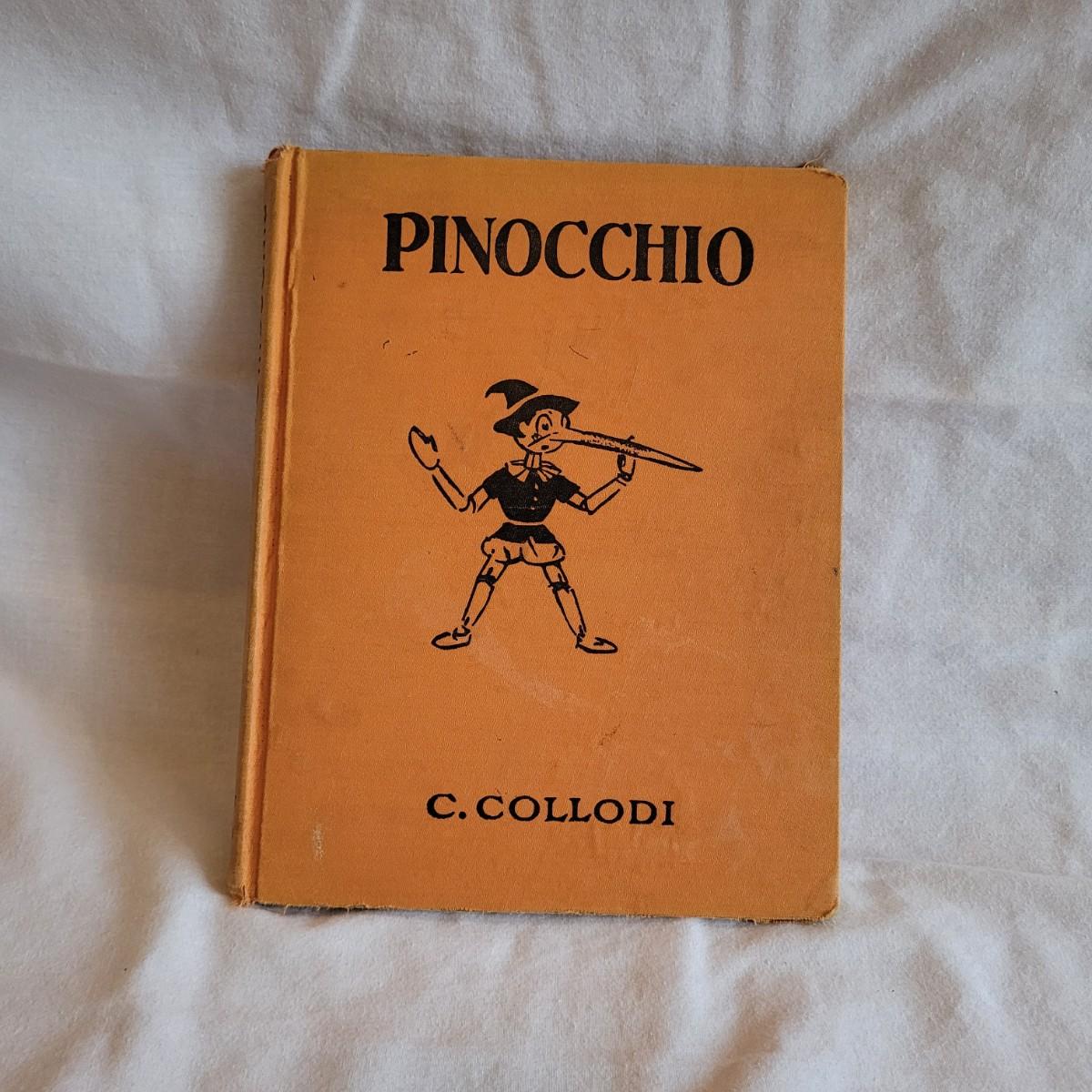 Hardback copy of "Pinocchio" published in 1940, this is a rare version of this book. Author is C. Collodi. Edited by Watty Piper. It narrates the adventures of a wooden puppet who dreams of becoming a real boy. The book features illustrations by Tony Sarg, known for his whimsical style. Shows some signs of age.