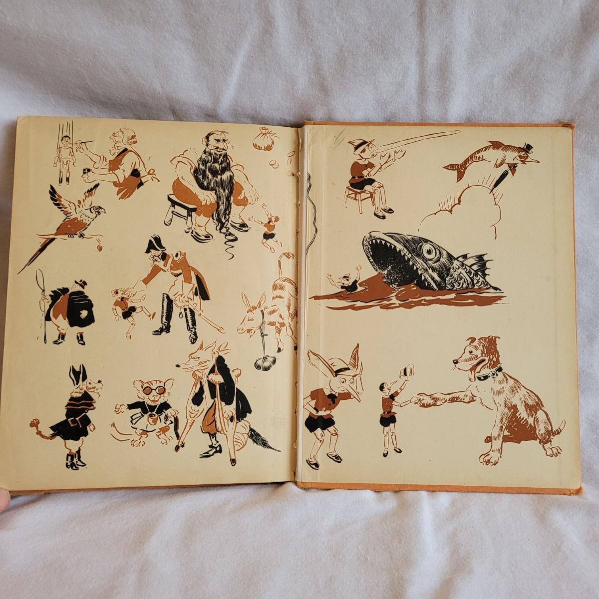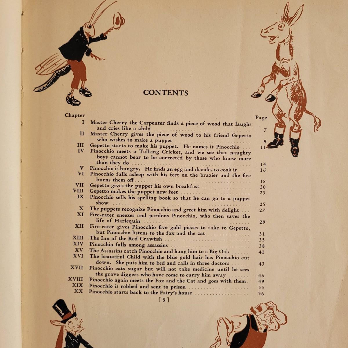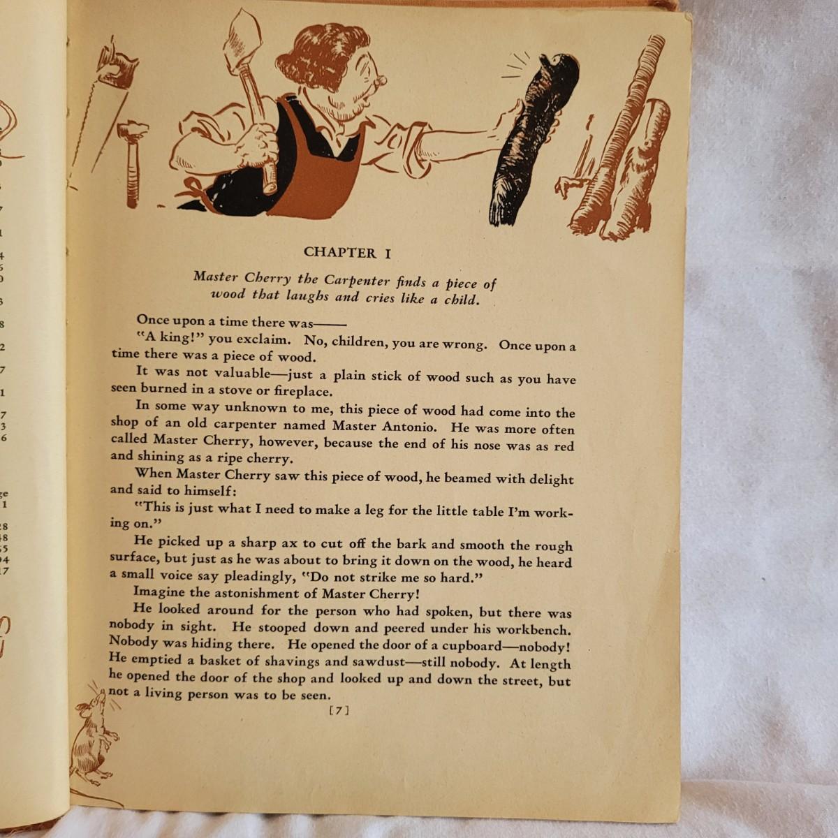 Hardback copy of "Pinocchio" published in 1940, this is a rare version of this book. Author is C. Collodi. Edited by Watty Piper. It narrates the adventures of a wooden puppet who dreams of becoming a real boy. The book features illustrations by Tony Sarg, known for his whimsical style. Shows some signs of age.