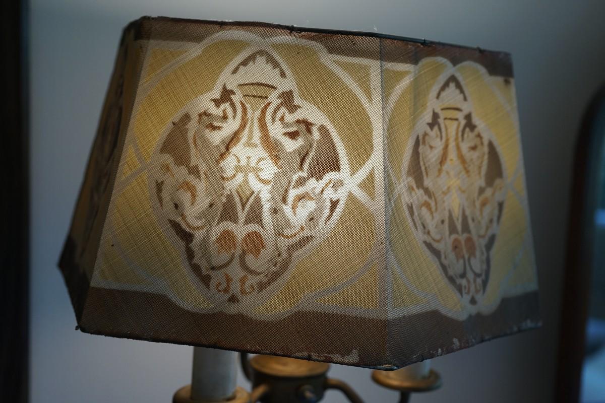 The shade I believe to be older than this lamp. Shade is in very good condition