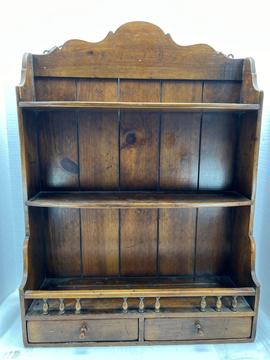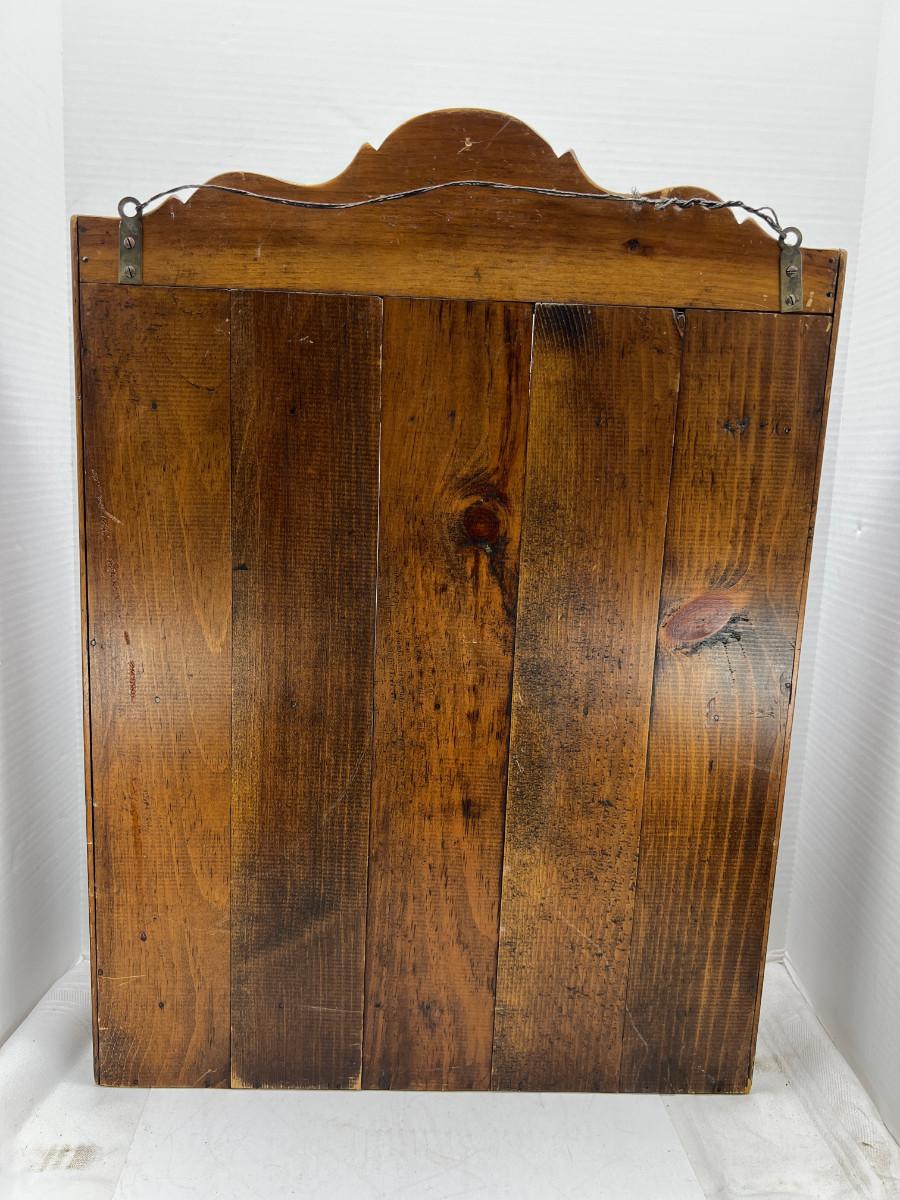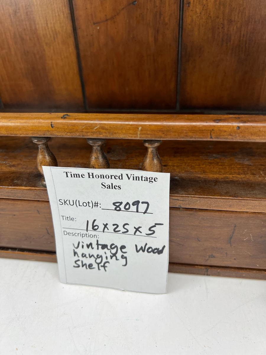 16" rack natural knotty pine with original stain. ready to hang and fill with bottles or collections.