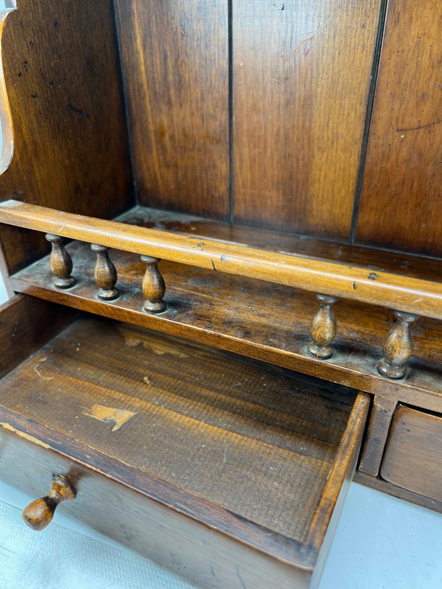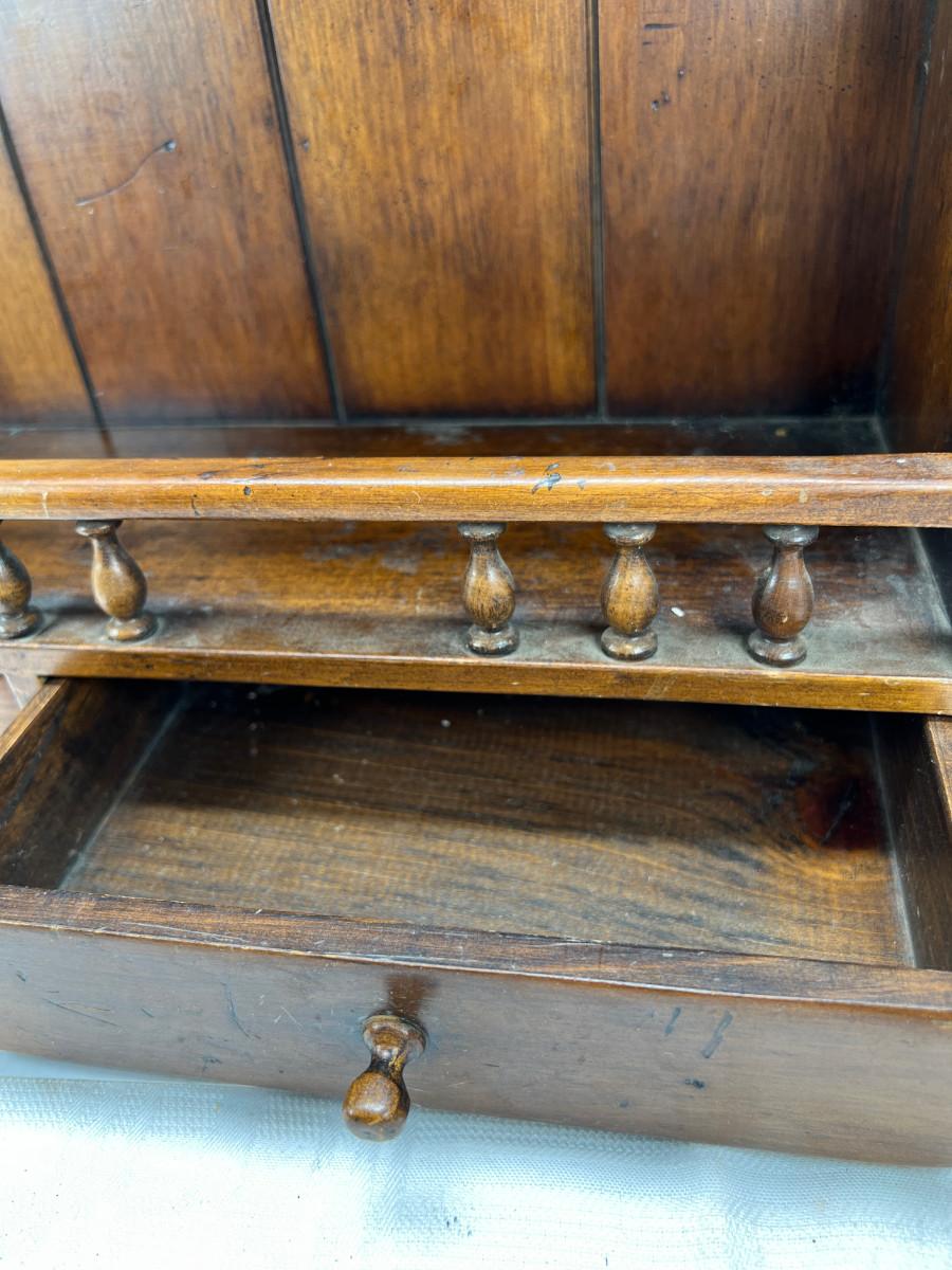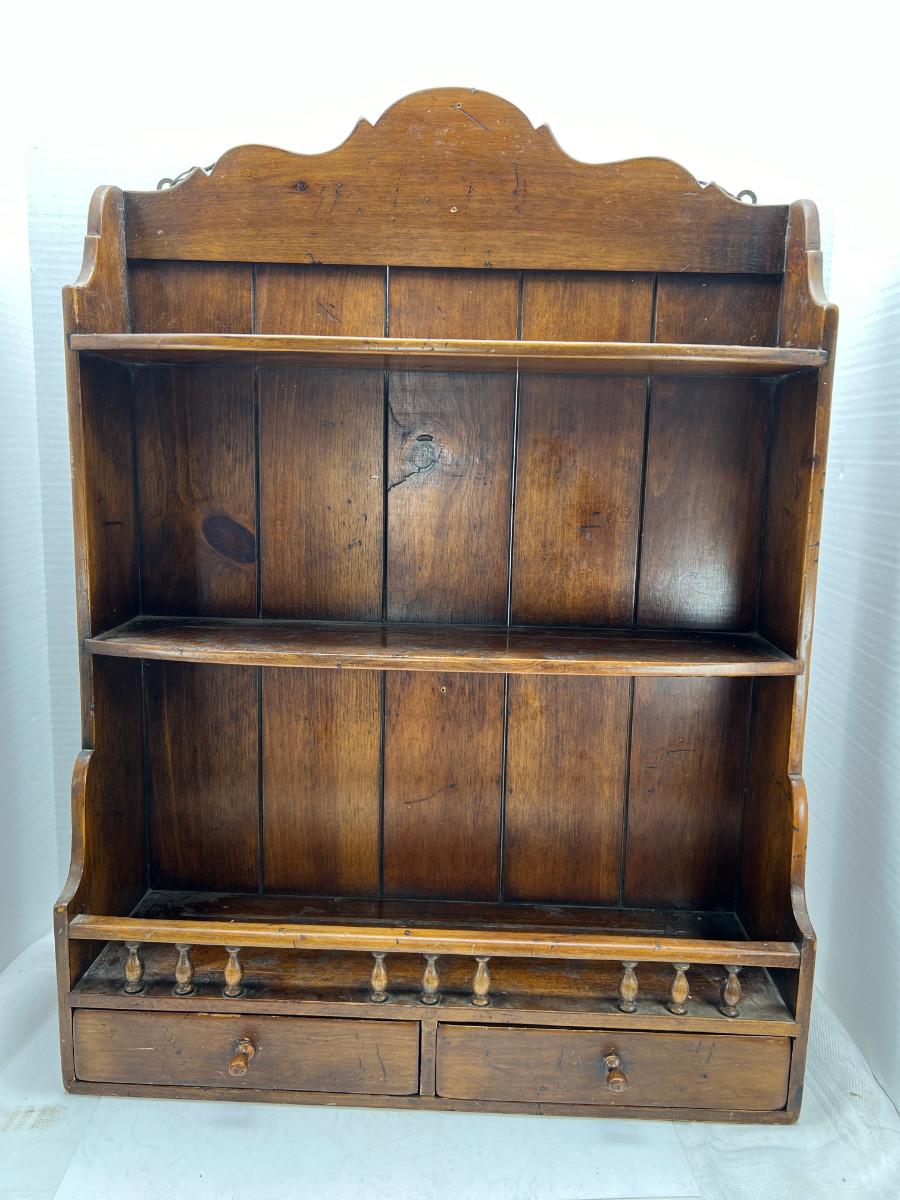 16" rack natural knotty pine with original stain. ready to hang and fill with bottles or collections.