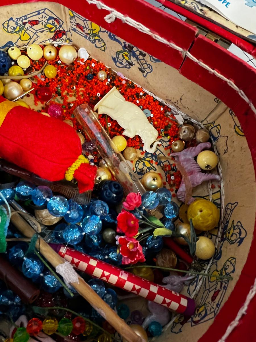 Used Fair Condition, Cracker Jack Charms and Beads in the bottom. Played with.