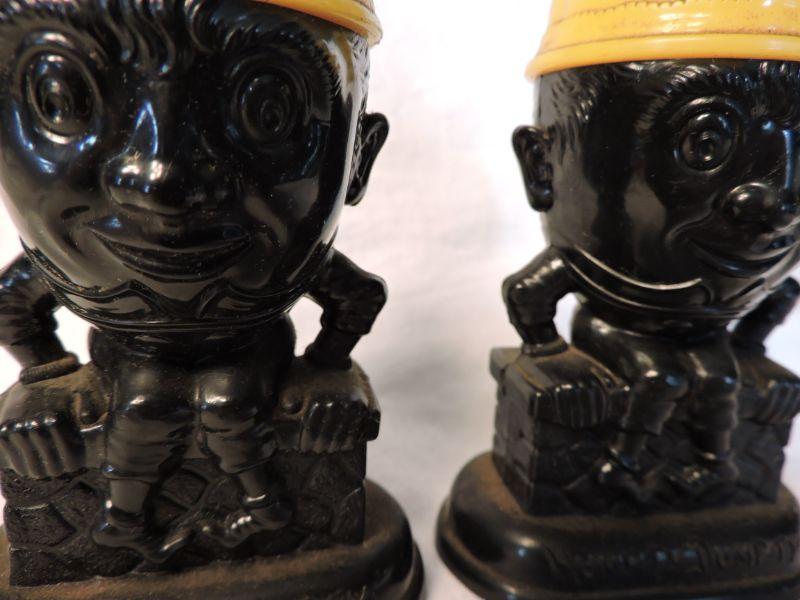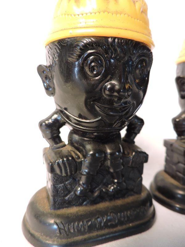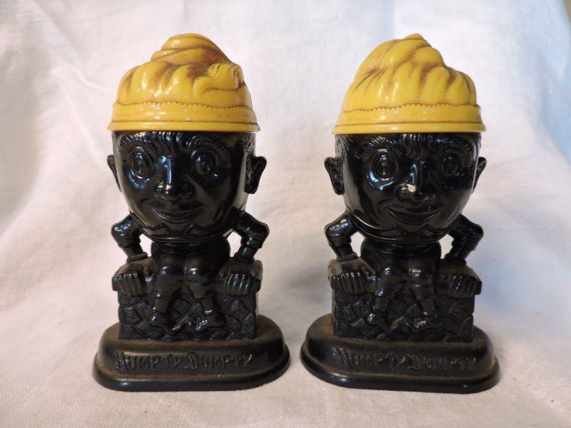 1940s Molded Plastic Yellow Black Big Eye Humpty Dumpty Salt Pepper Shaker Set