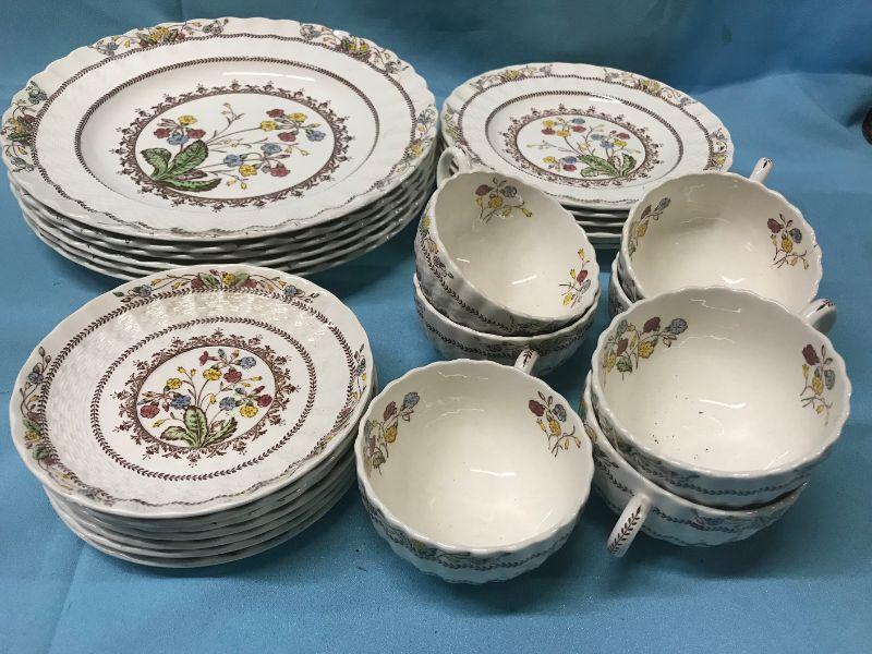 Spode Copeland Cowslip china, Made in England S173. Pieces included as shown. Appear to be unused. All items SOLD AS IS, AS SHOWN and subject to reserve bid. Unsold and Unpaid items will be relisted. Items can be picked up on Wednesday June 5th between 5-7 PM. We can ship small items. For items we do not ship, Buyer can use commercial shipper (UPS, Fedex, etc) Pack and Ship services and we will work with them.