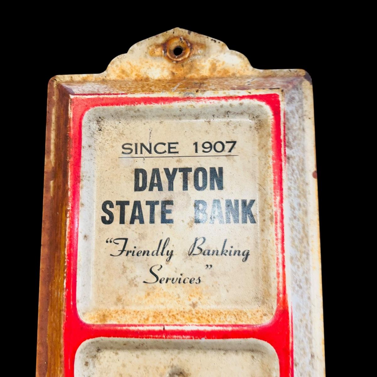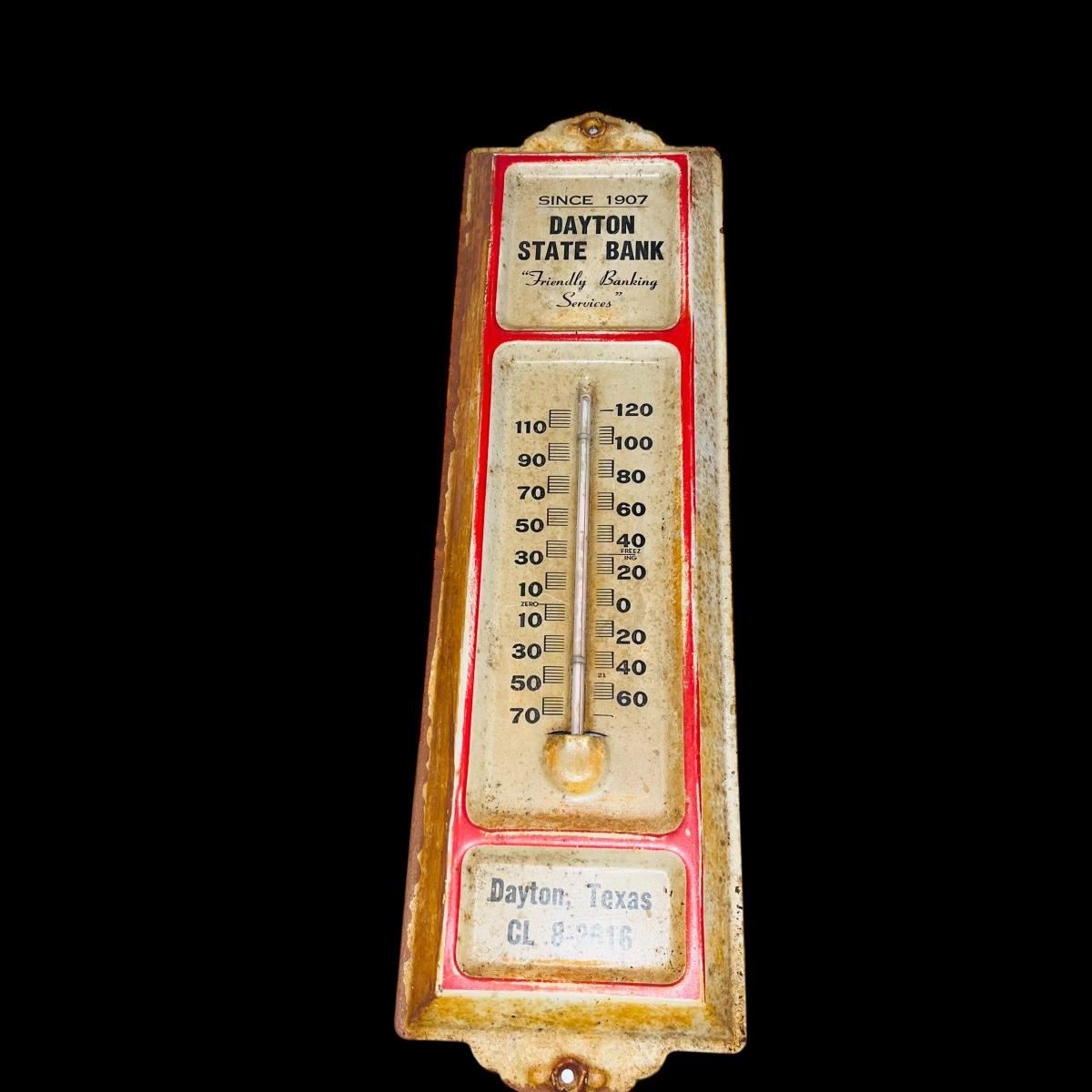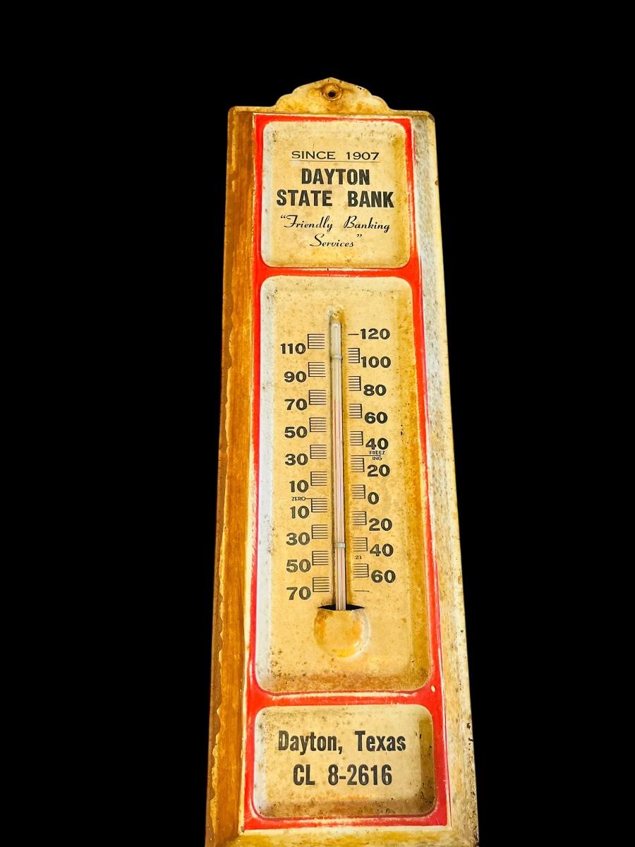 1940'S Tin Dayton State Bank Thermometer, Lithograph, Dayton Texas CL 8-2616 Friendly Banking Service