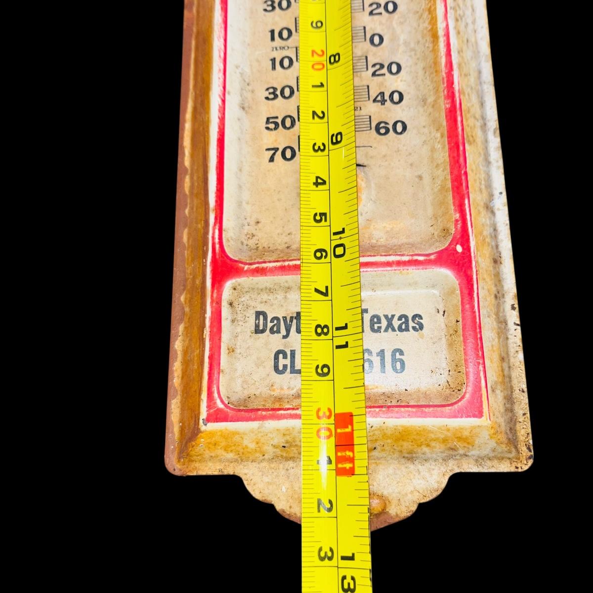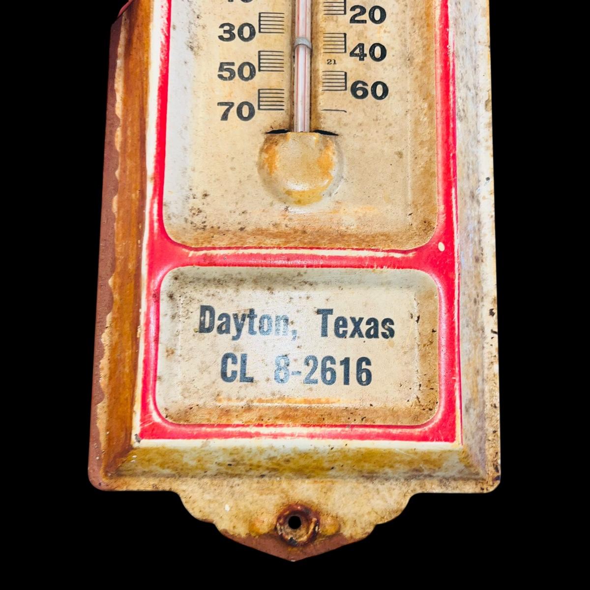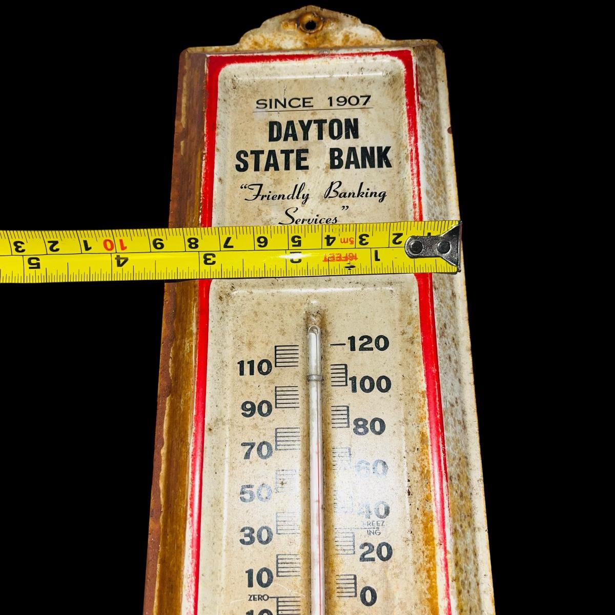 1940'S Tin Dayton State Bank Thermometer, Lithograph, Dayton Texas CL 8-2616 Friendly Banking Service