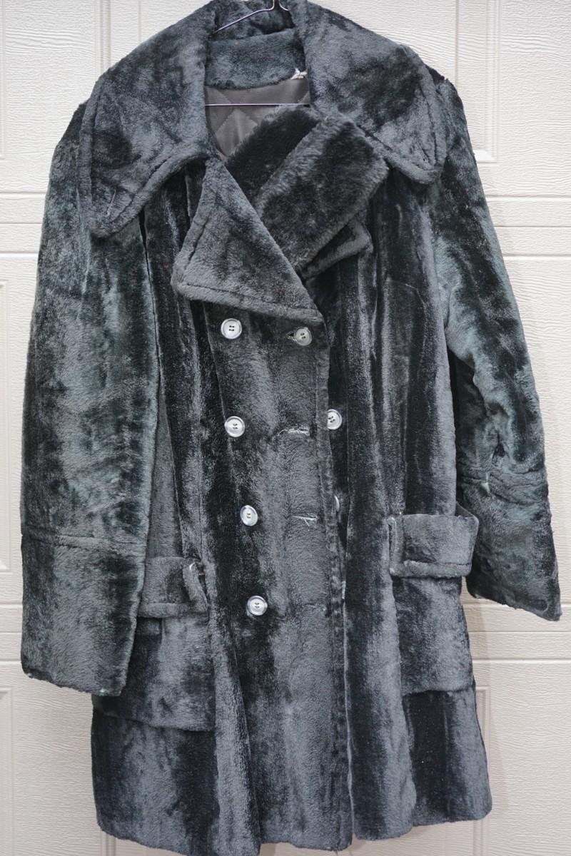 1940'S VINTAGE MANS FUR COAT. BLACK. W/ SILK STYLE LINING