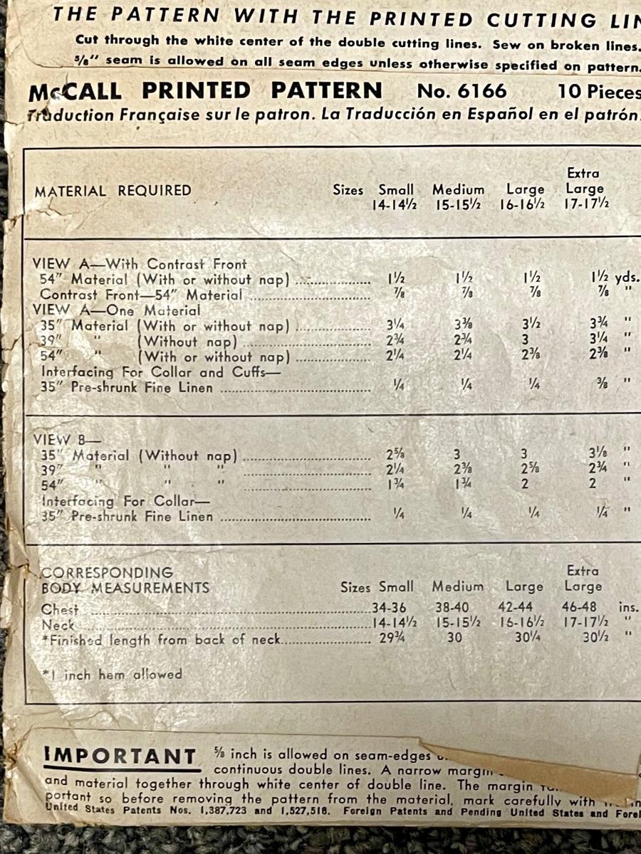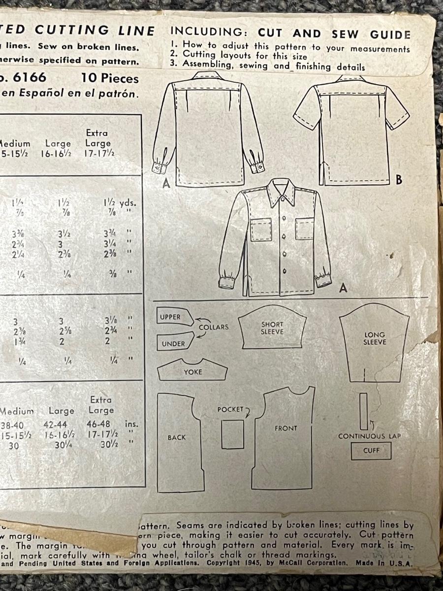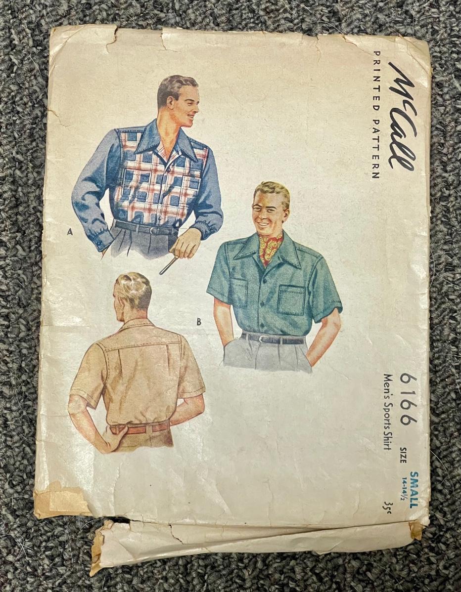 1940's Vintage McCall Sewing Pattern 6166 WWII era Men's Sports Shirt size Small