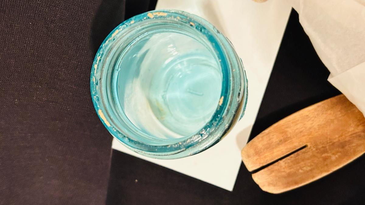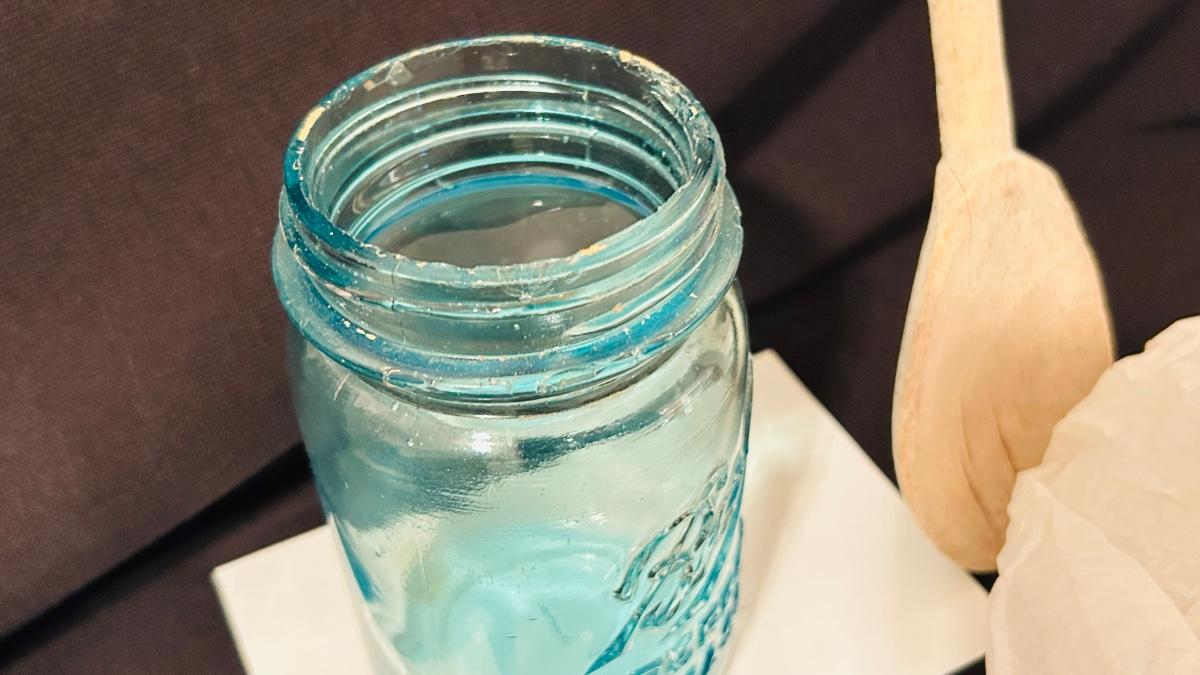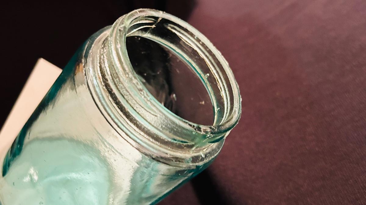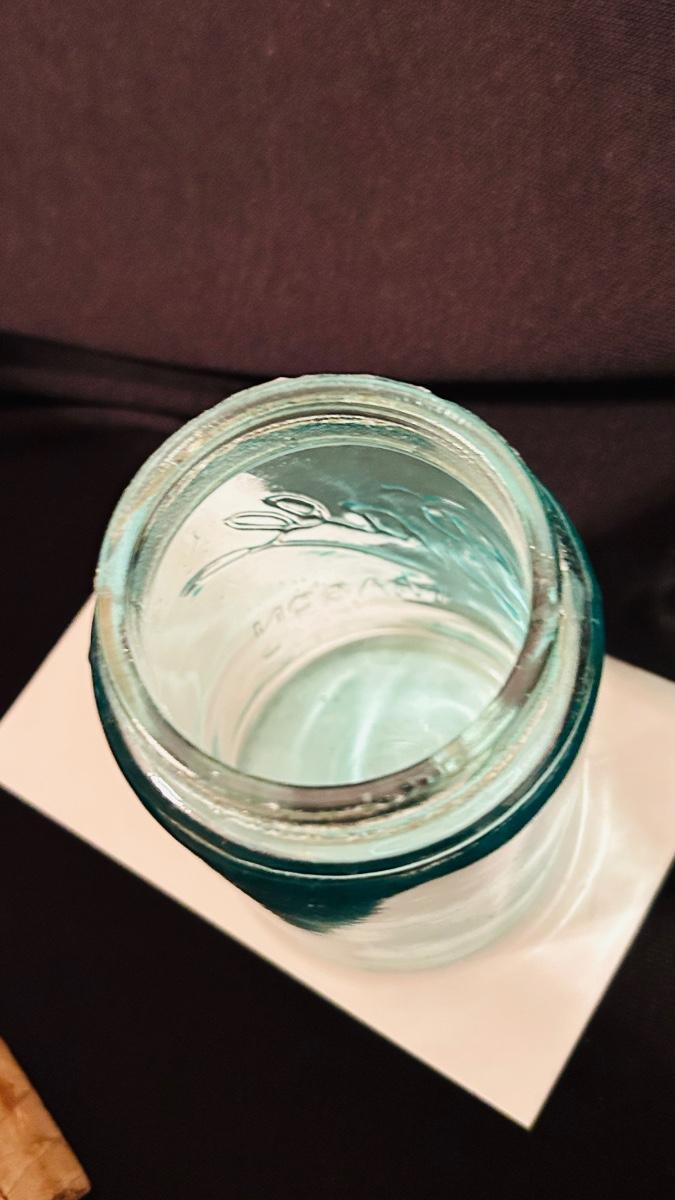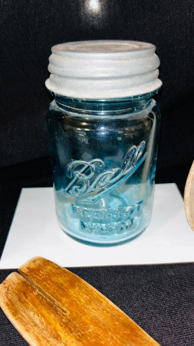 Two blue glass Ball Sure Tight Mason jars with lids