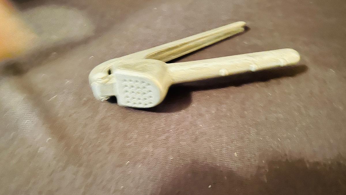 A metal nutcracker/garlic press
