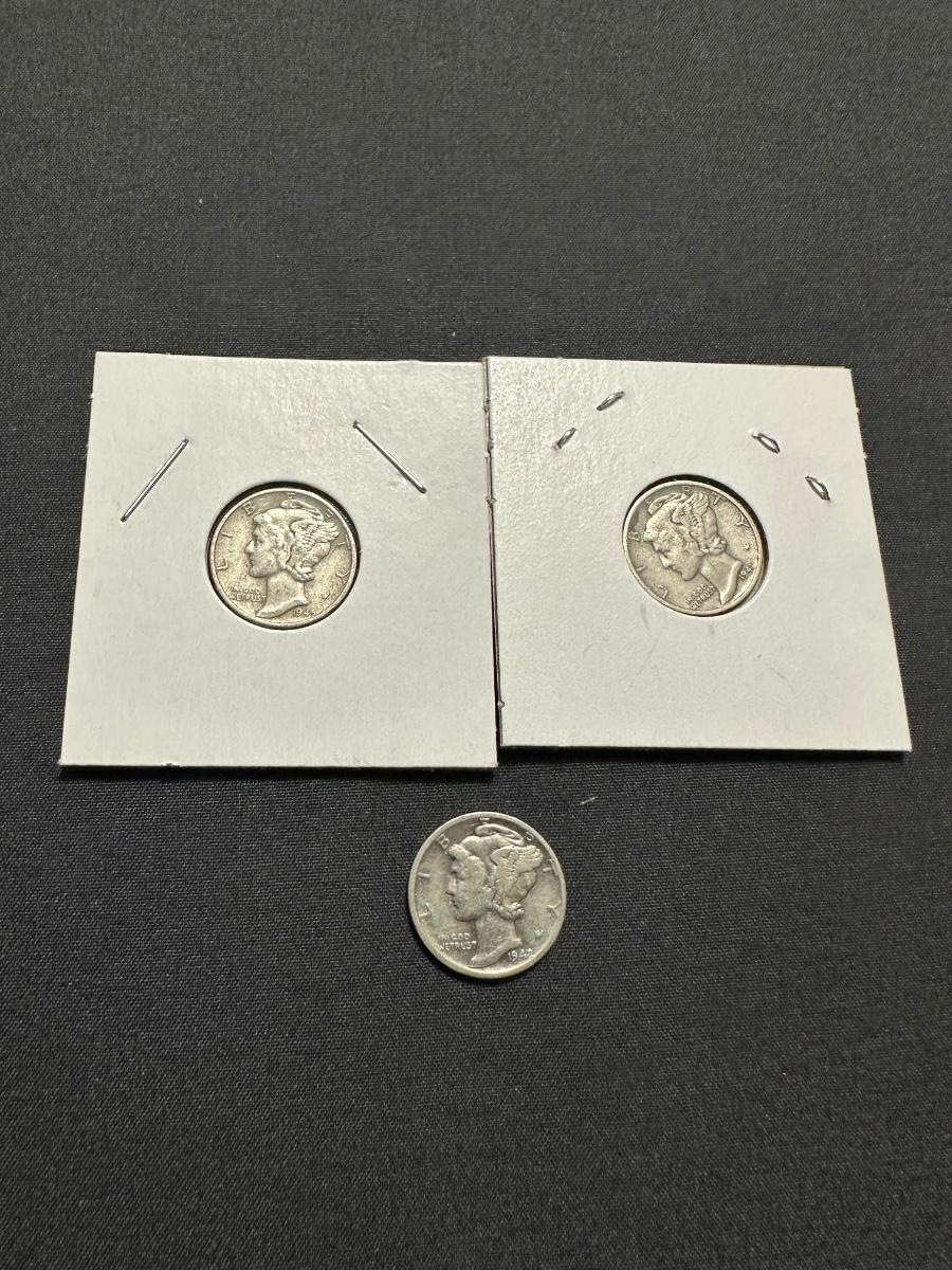 1941, 1942 AND 1945 MERCURY DIMES - .900 SILVER