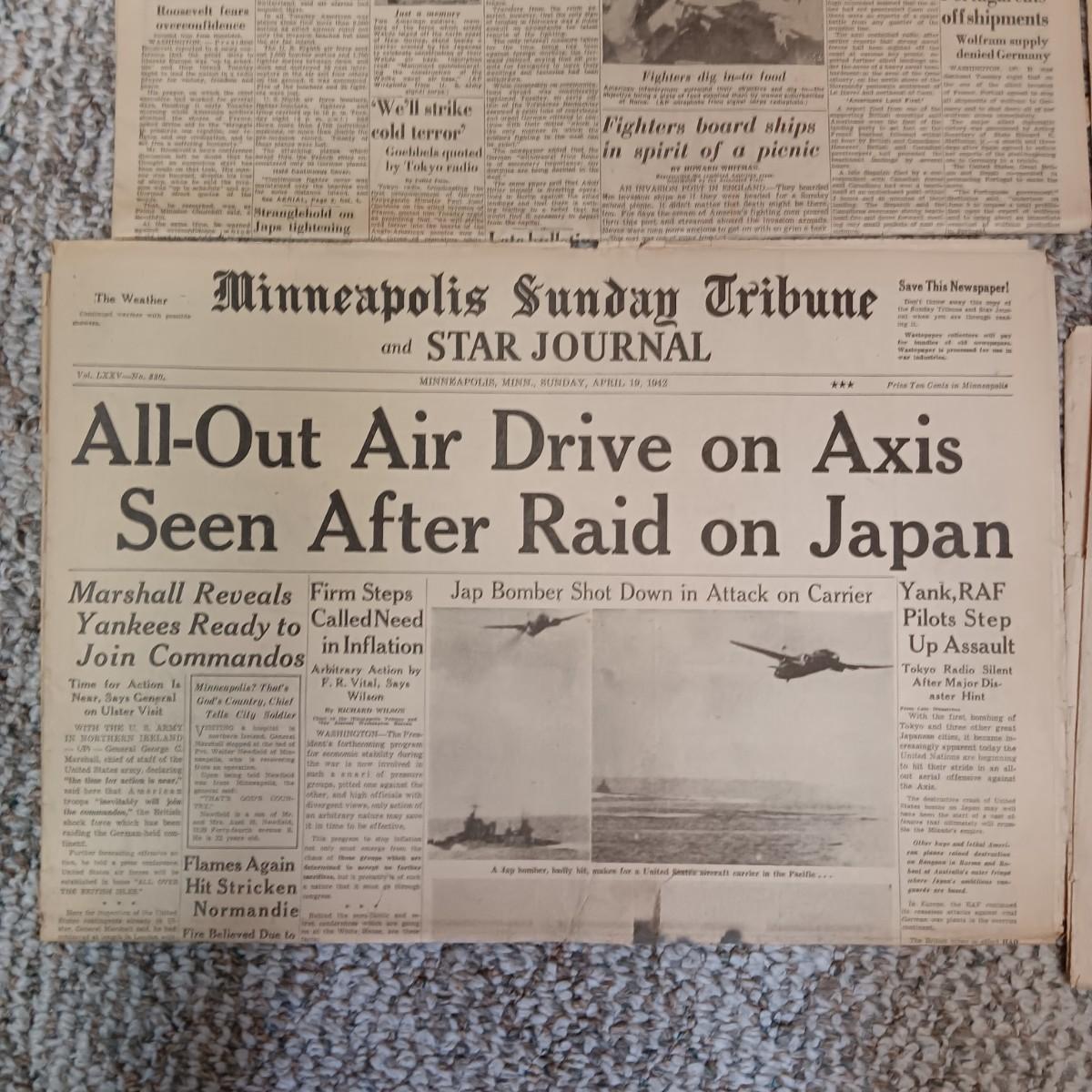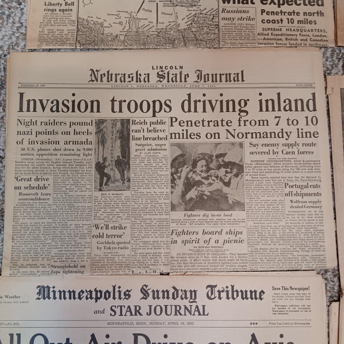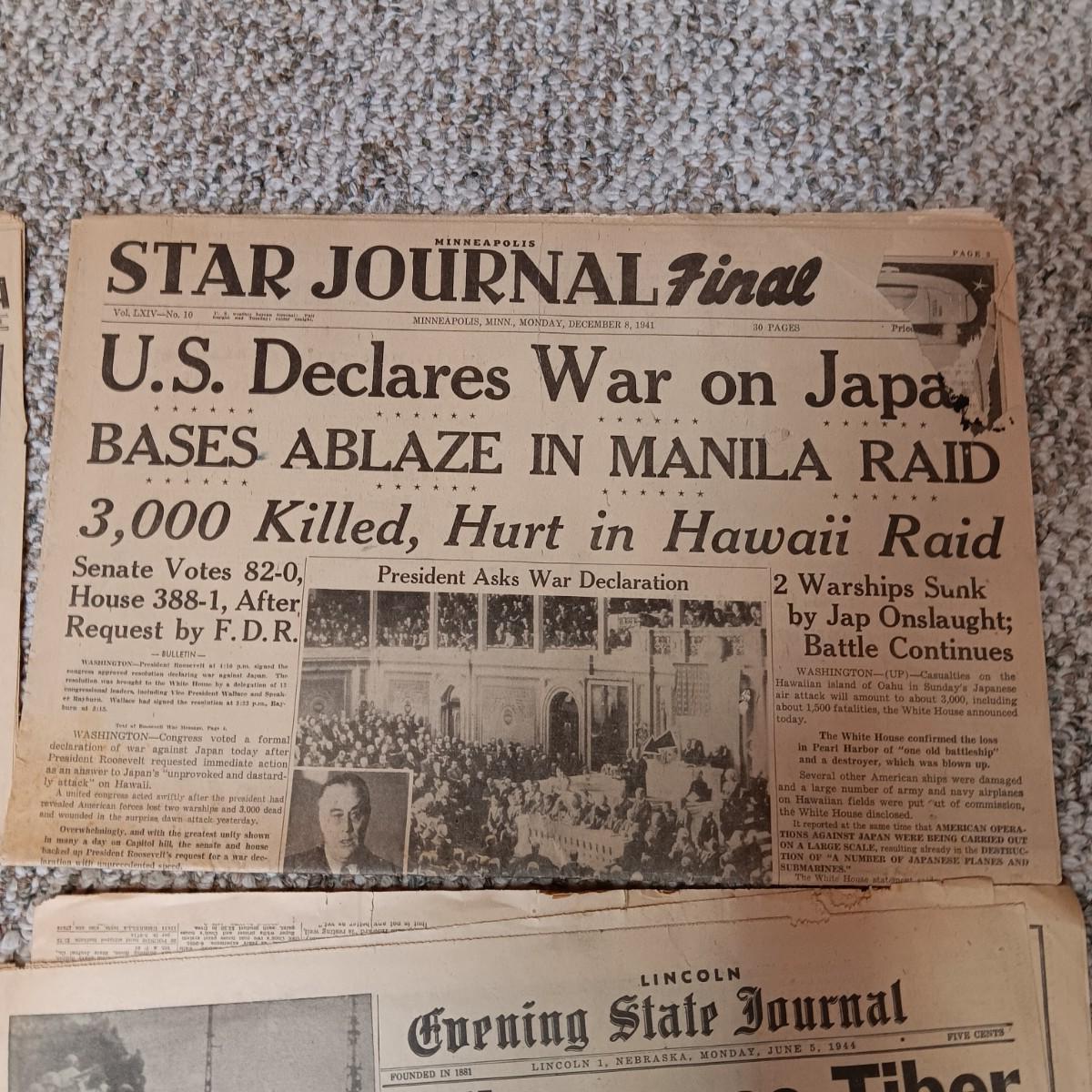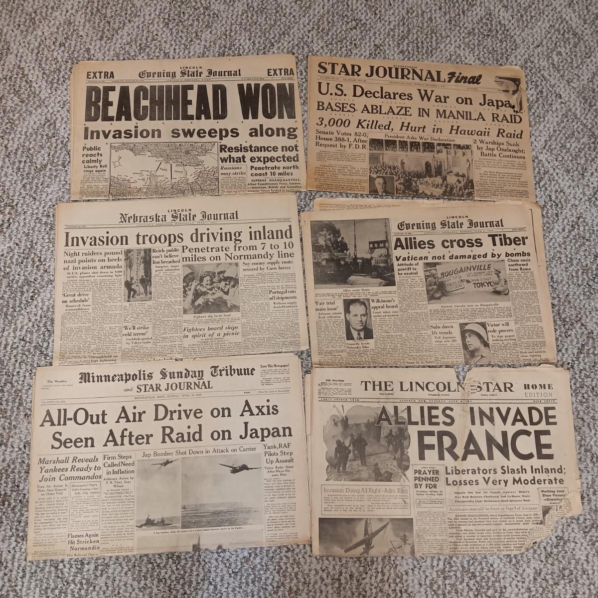 1941 - 1944 NEWSPAPER HEADLINES REGARDING WWII