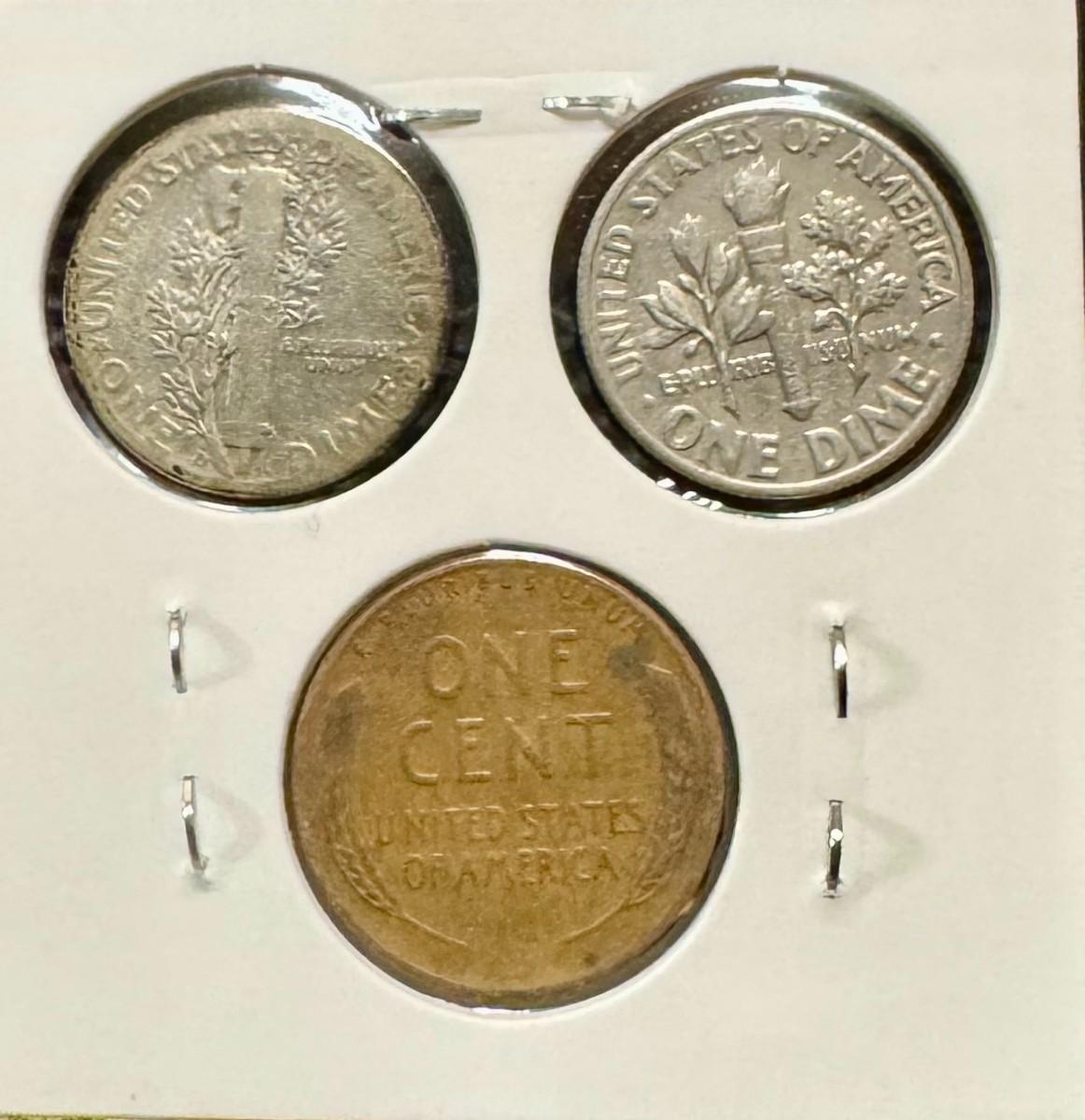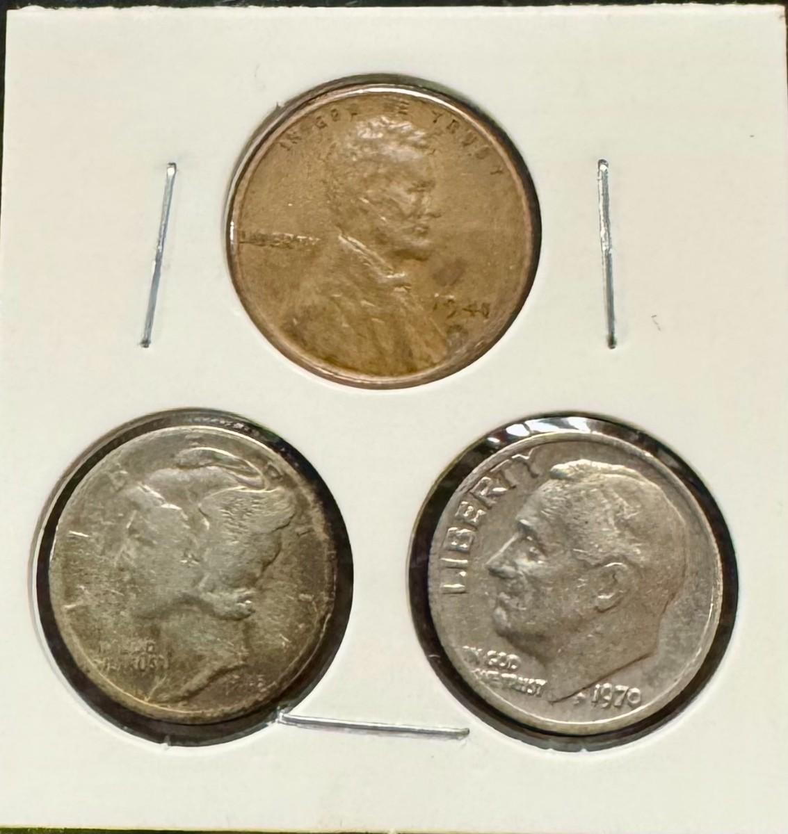 1941 Wheat Penny, 1945 Mercury Dime, 1970 Roosevelt Dime