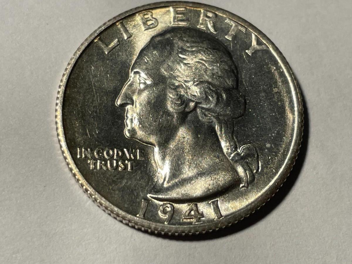 1941-S CHOICE BRILLIANT UNCIRCULATED CONDITION WASHINGTON SILVER QUARTER AS PICTURED. FREE DOMESTIC SHIPPING.