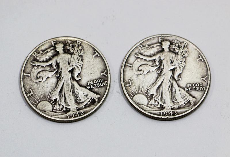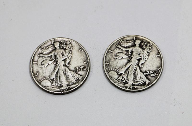 1942 & 1943 Silver Walking Libert Half Dollars - 2 Rare American Coins #501-02