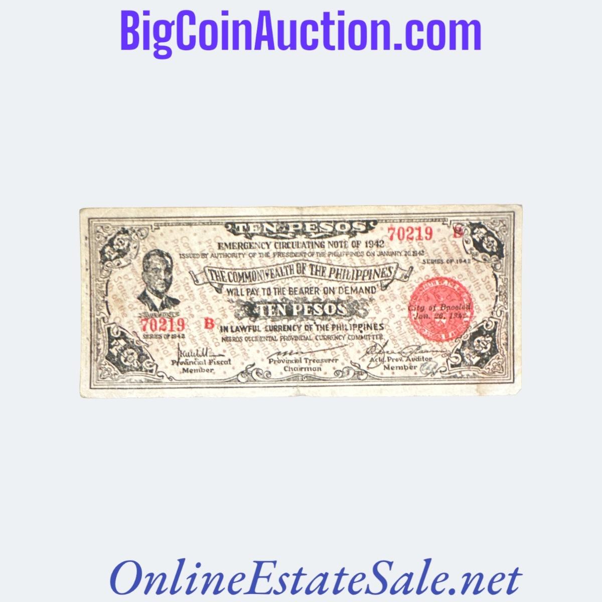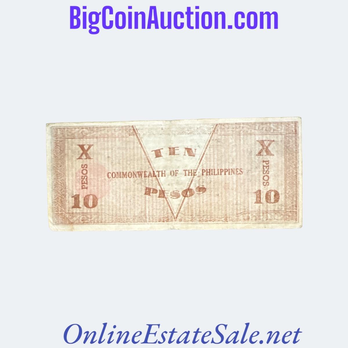1942 PHILIPPINES 10 PESOS - ORANGE SEAL