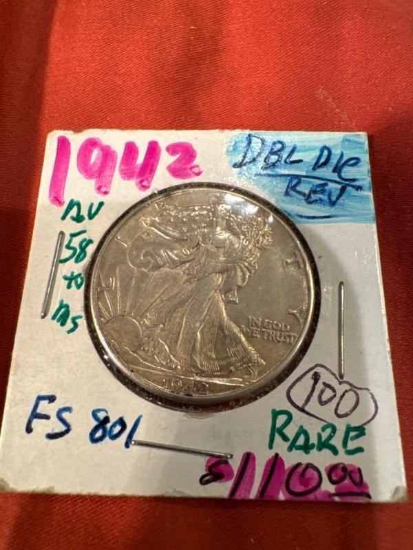 1942 WALKING LIBERTY MS60 DOUBLE DIE REV RARE