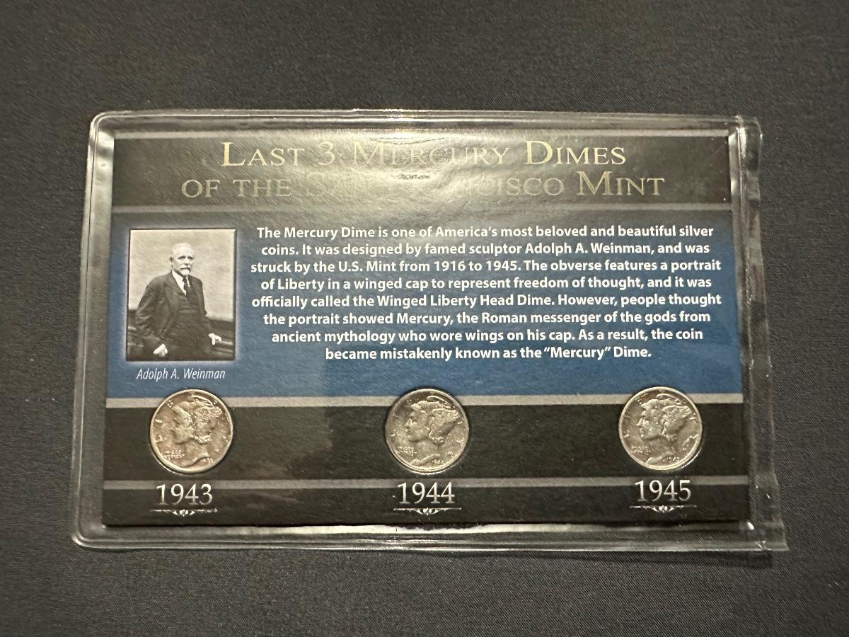 1943, 1944 AND 1945 MERCURY DIMES - .900 SILVER