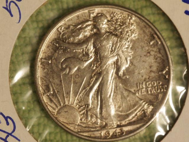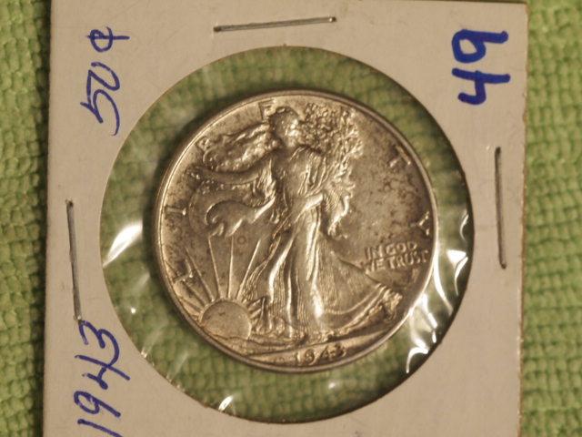 1943 P Walking Liberty Half Dollar in almost uncirculated Condition.