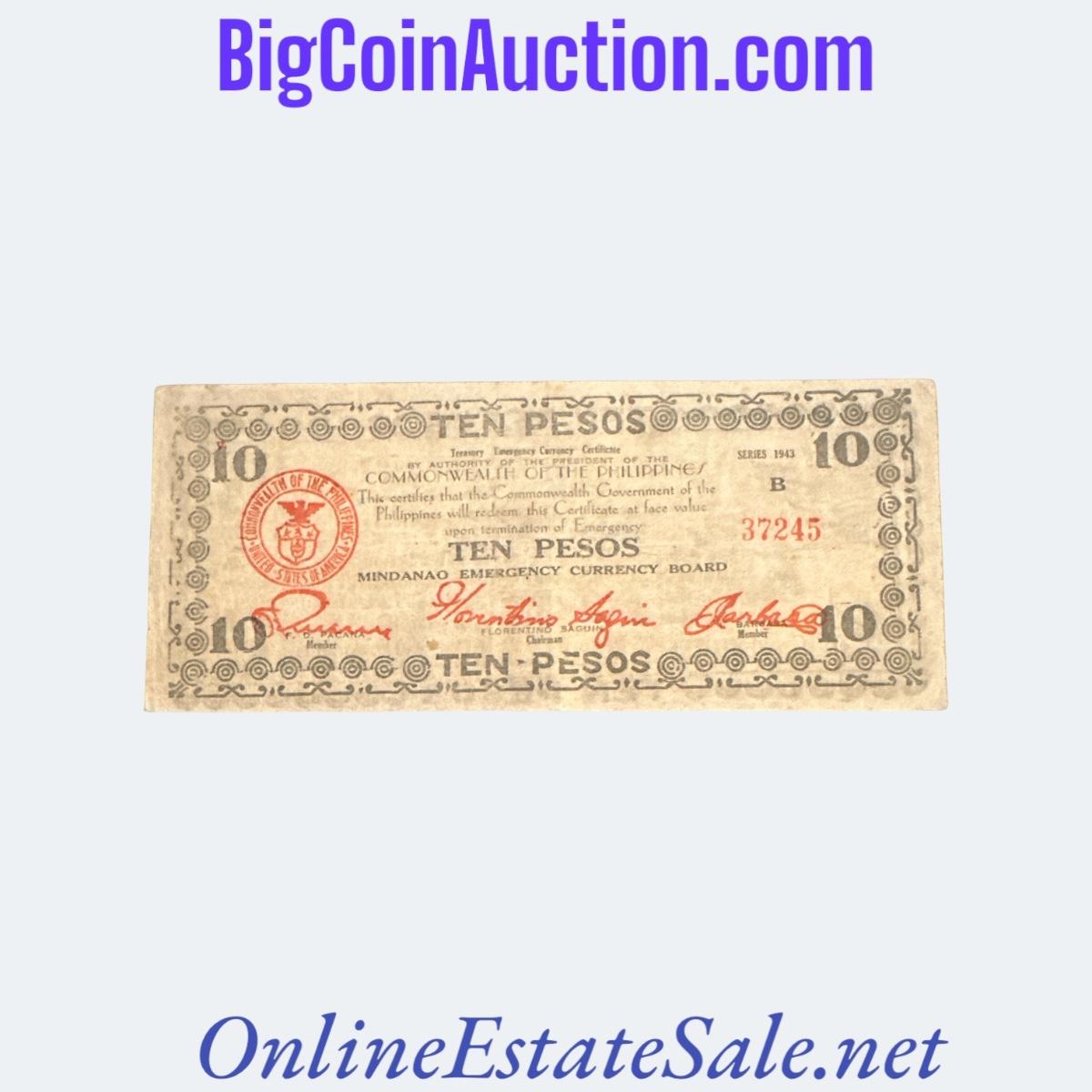 1943 PHILIPPINES 10 PESOS - MINDANAO - F