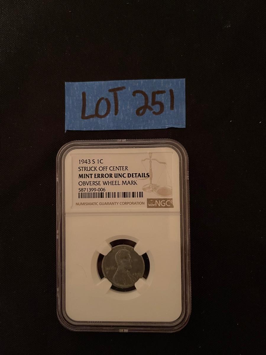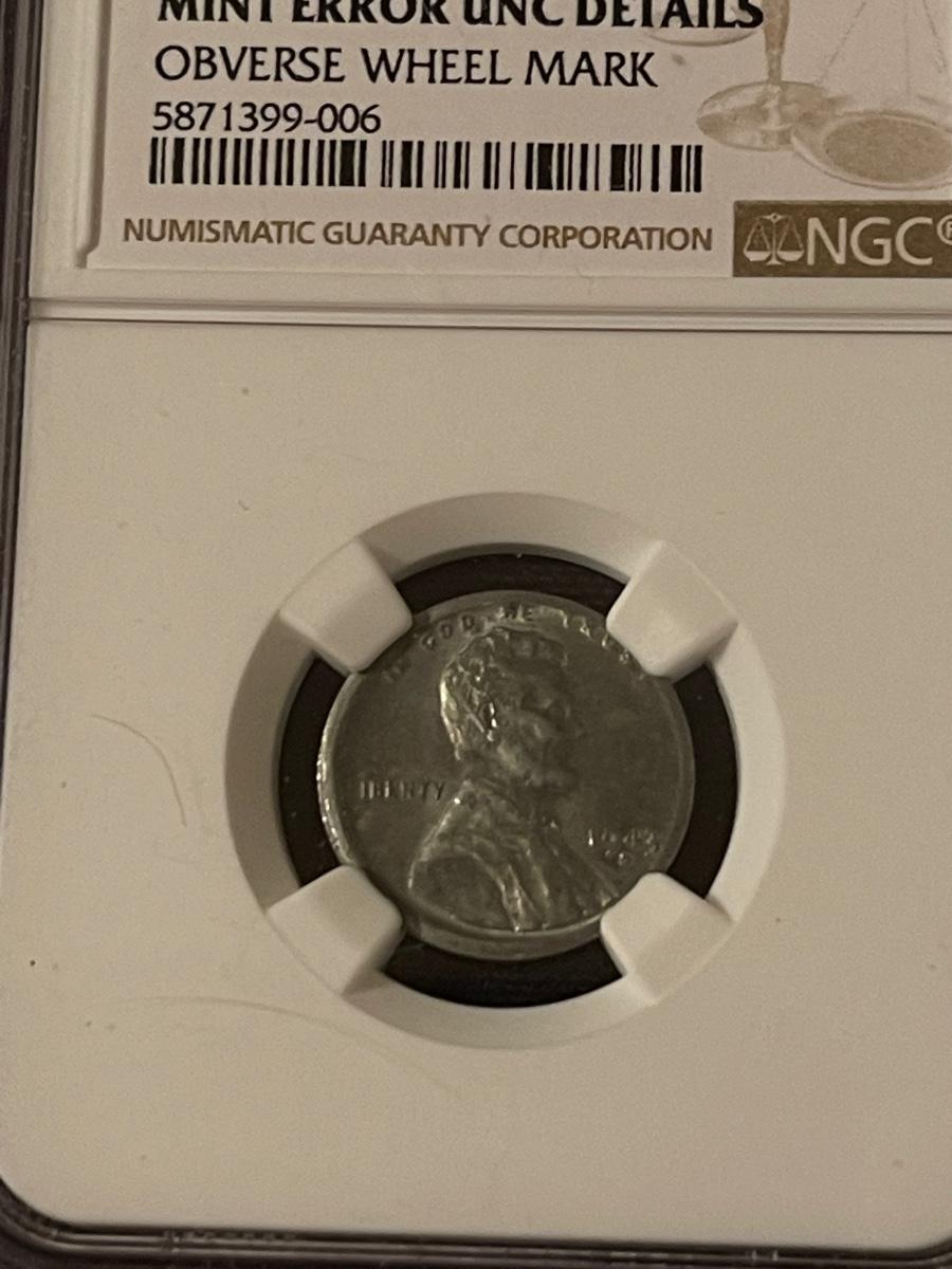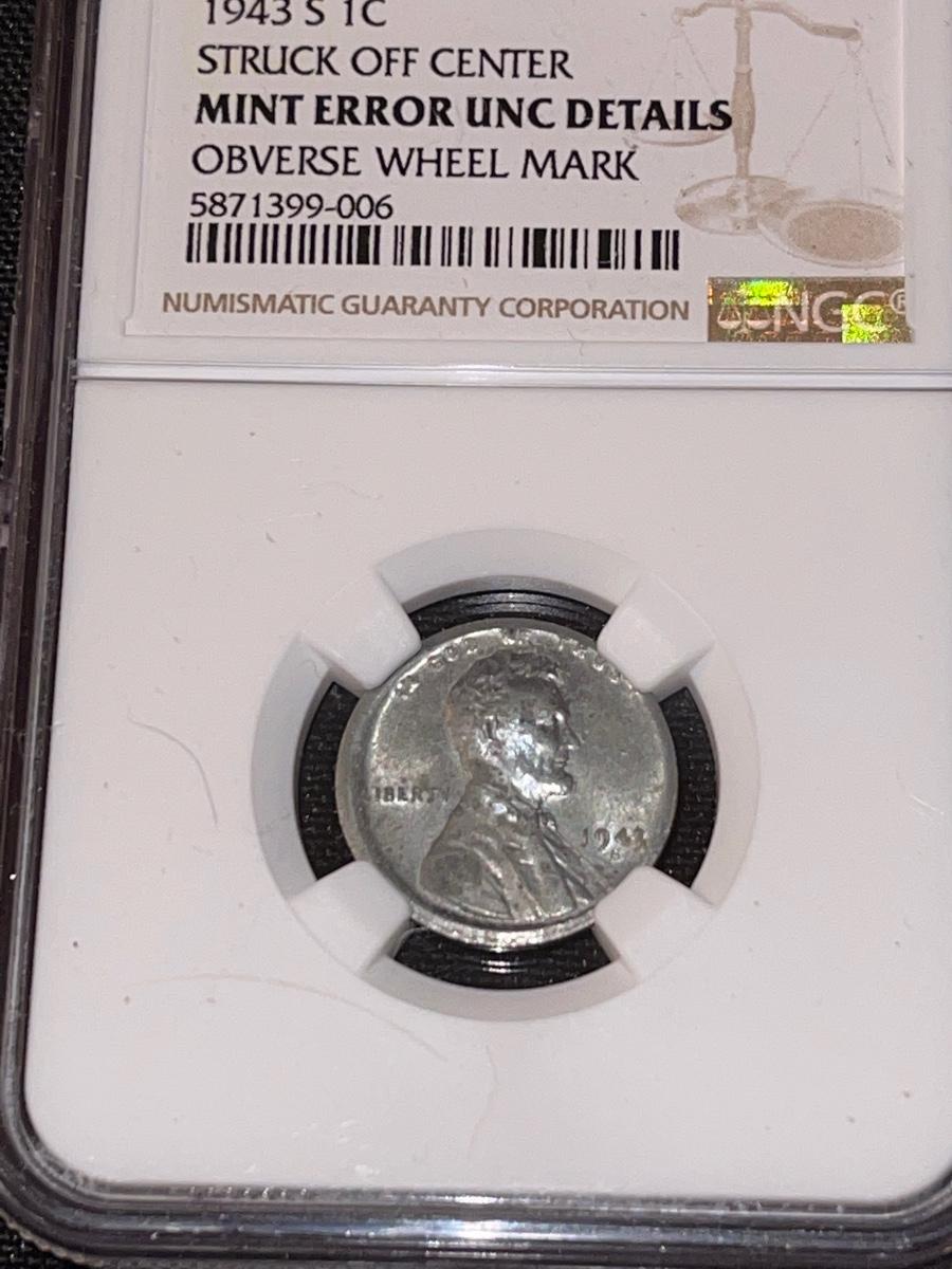 1943-S Struck off center mint error unciruclated details obverse wheel mark NGC
