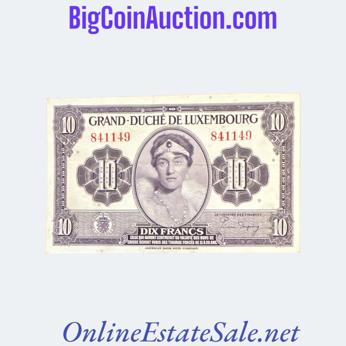 1944 LUXEMBOURG 10 FRANCS