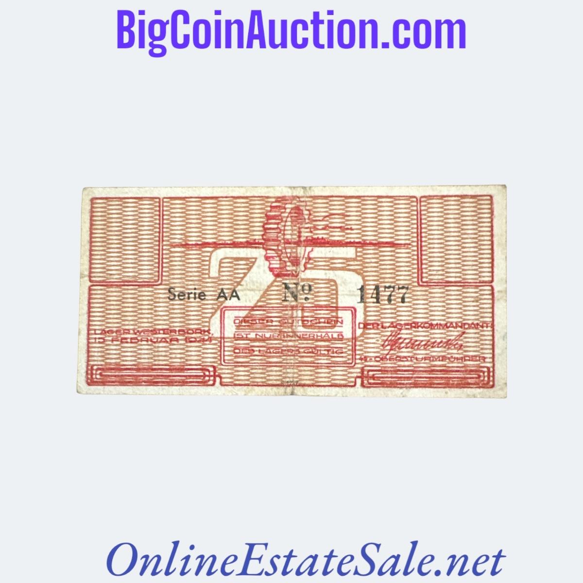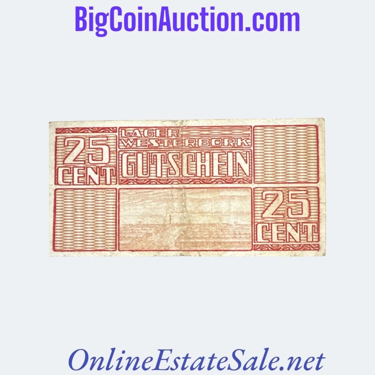 1944 NETHERLANDS WESTERBIRK CONCENTRATION CAMP 25 CENT NOTE