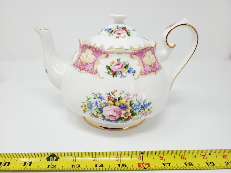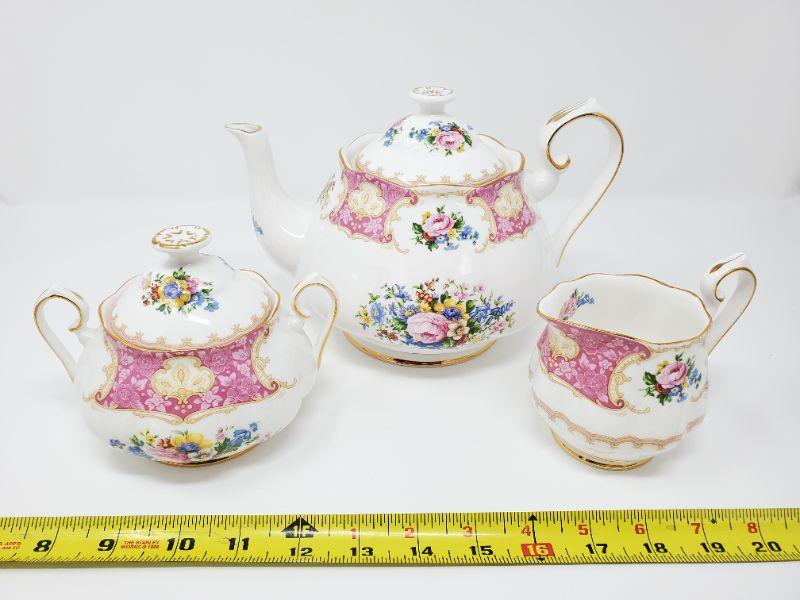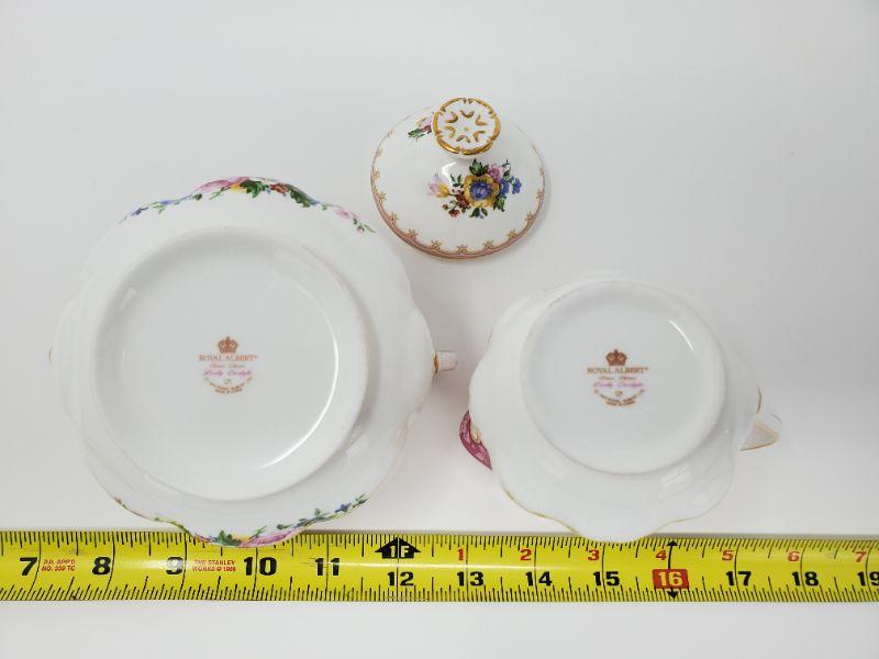 This 1944 Royal Albert bone china set is beyond gorgeous! Tea pot, cream and sugar dish included. Very good condition, no chips, breaks or cracks. Please see photos