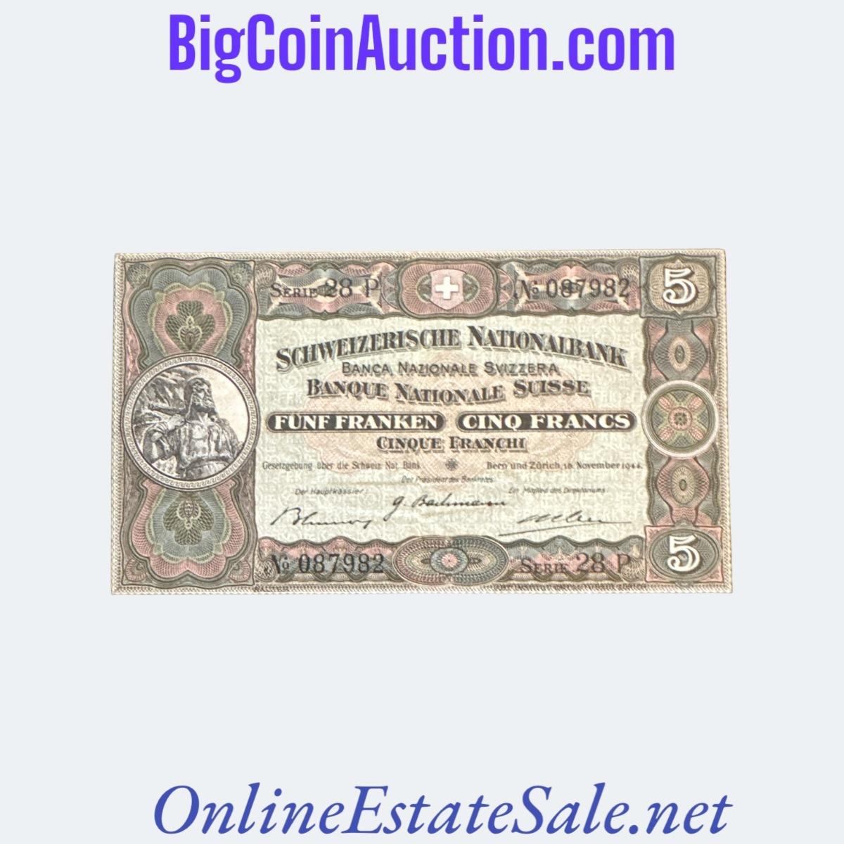 1944 SWITZERLAND 5 FRANKEN - VF+
