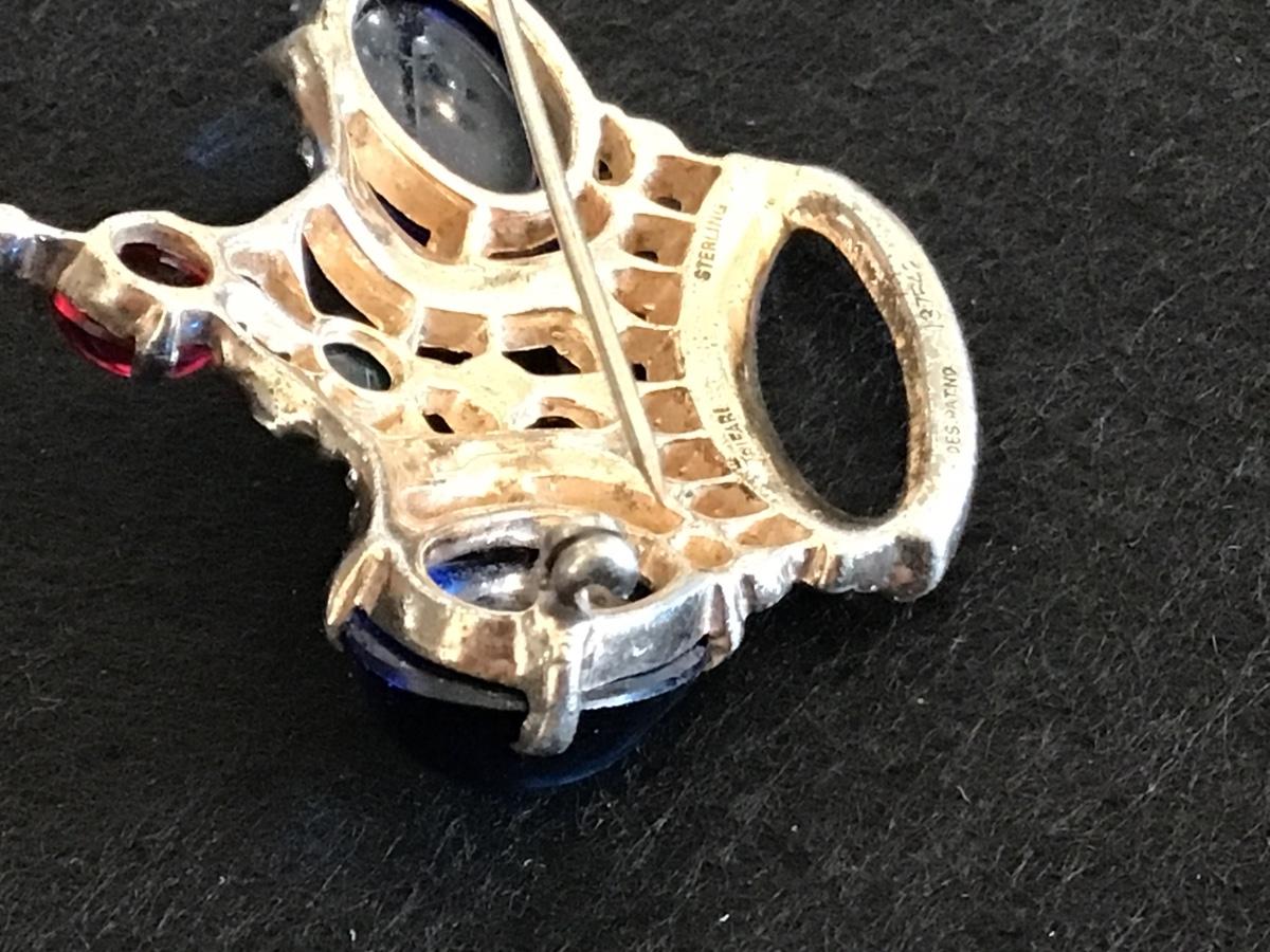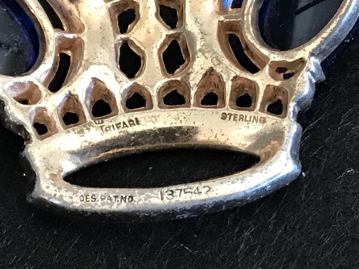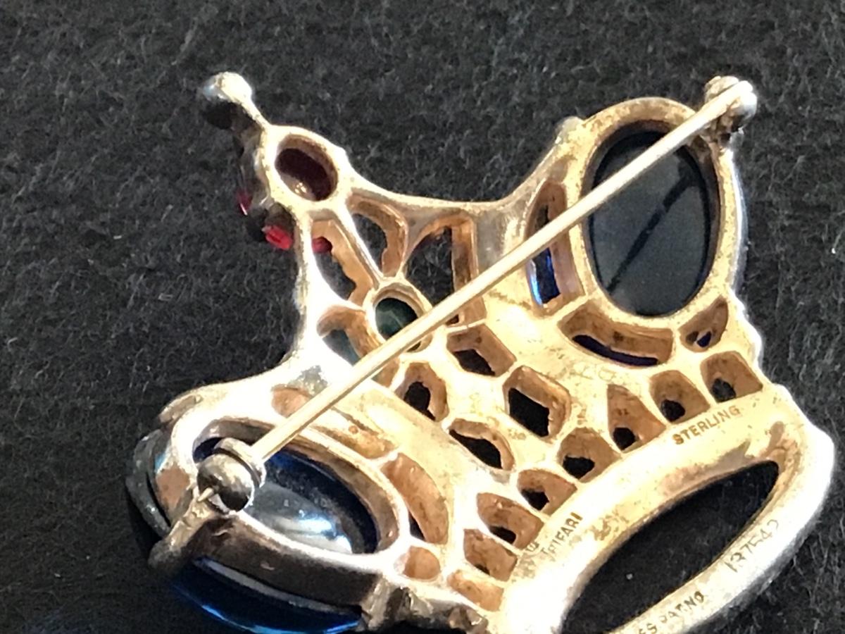1944 Trafari Vermeil Sterling Blue Jelly Belly Alfred Philippe , Rhinestone Royal King Brooch. Highly Collectible