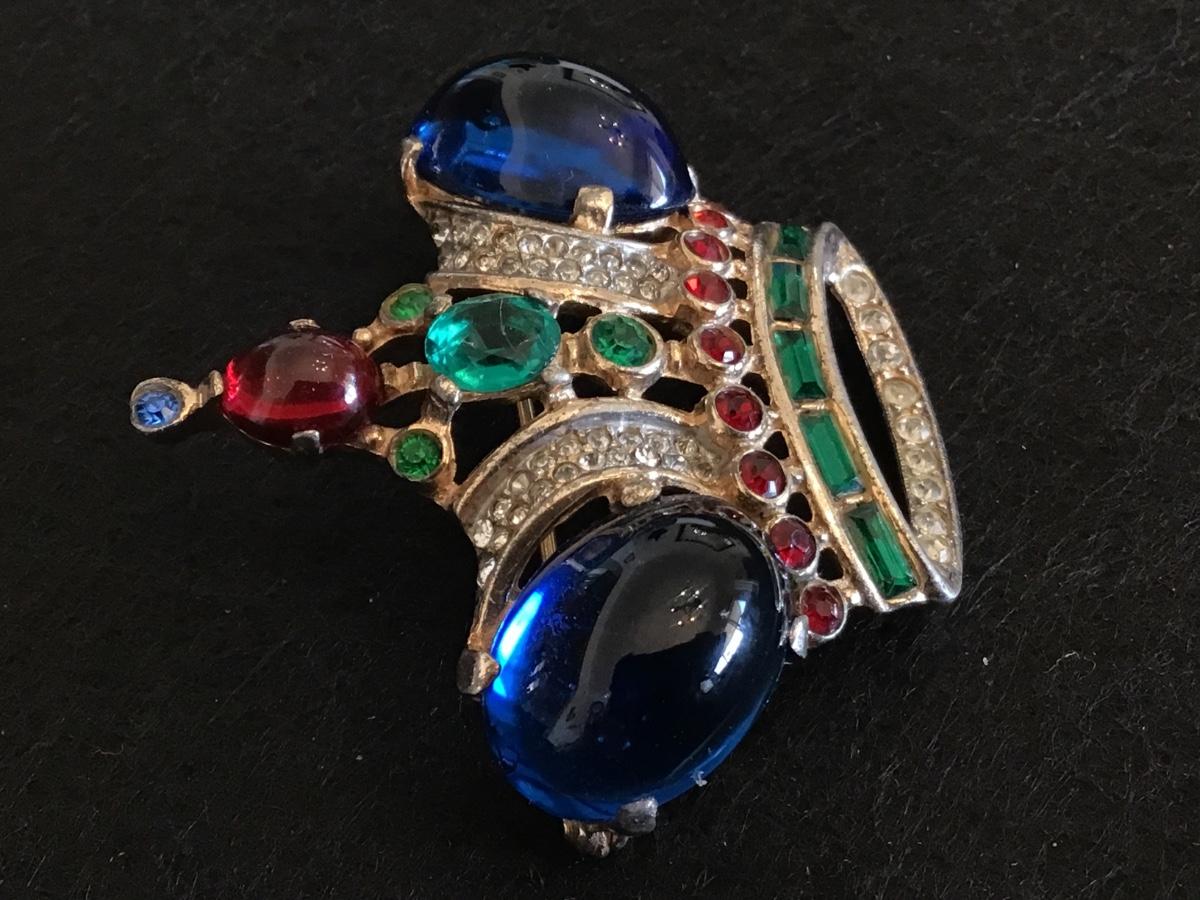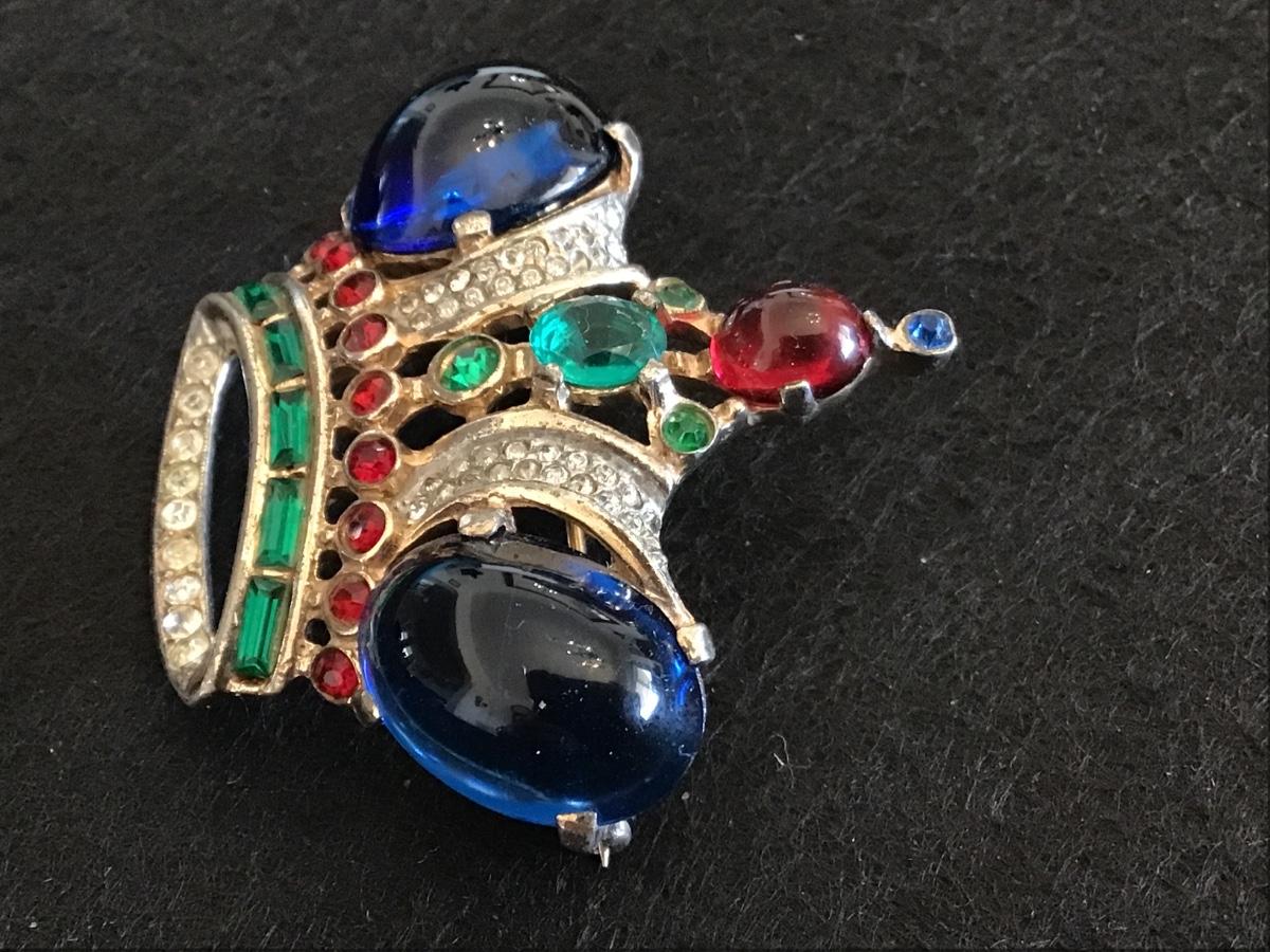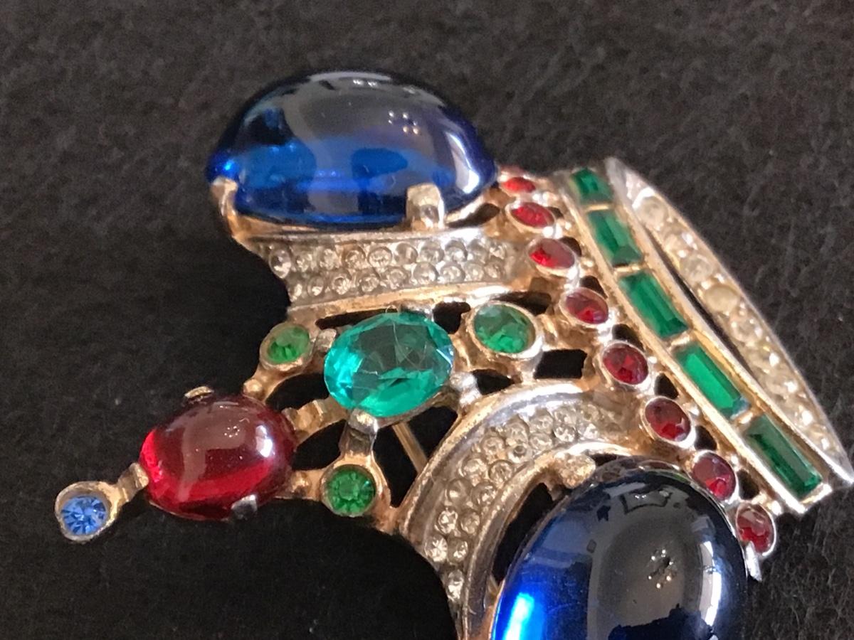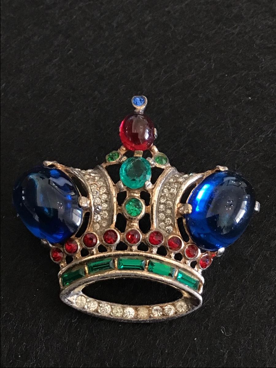 1944 Trafari Vermeil Sterling Blue Jelly Belly Alfred Philippe , Rhinestone Royal King Brooch. Highly Collectible